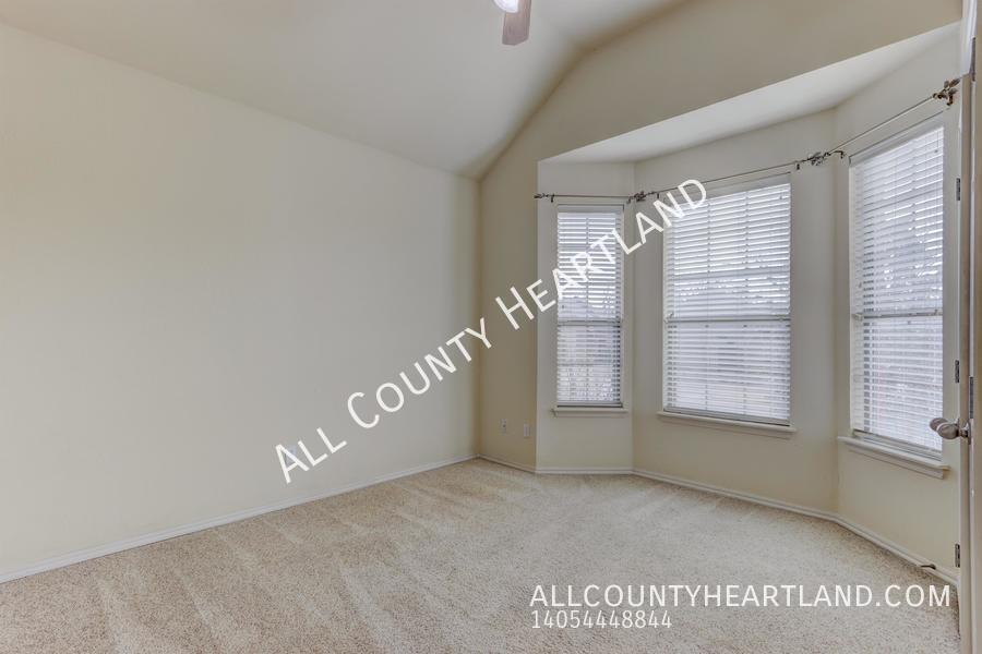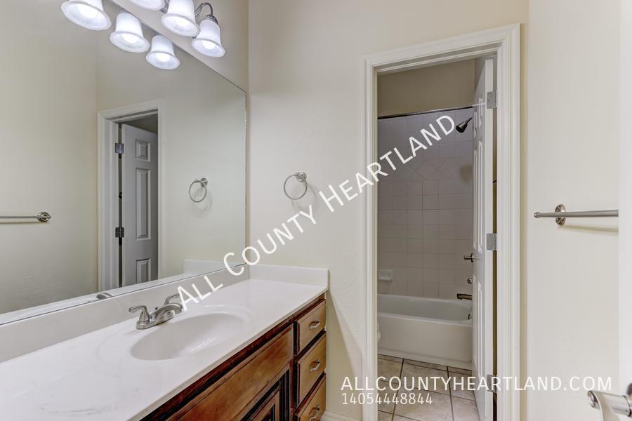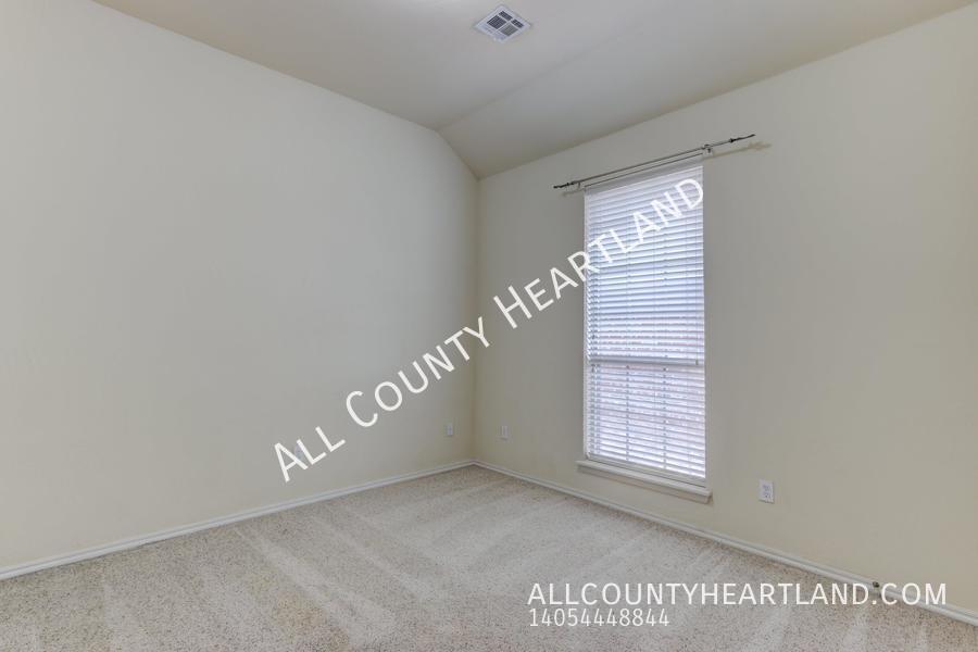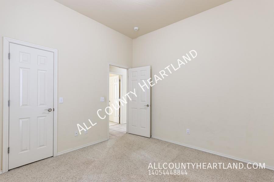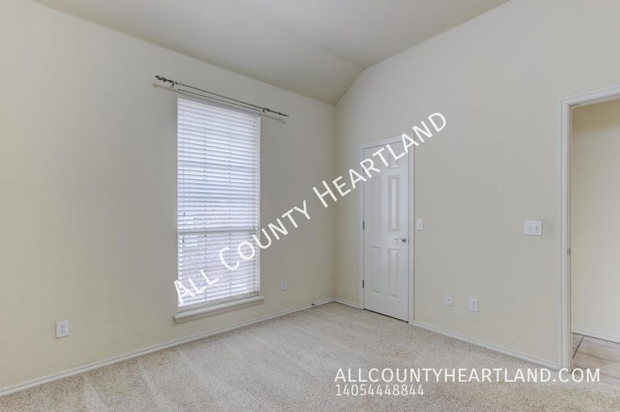 Incredible opportunity to live in the prestigious gated Traditions Neighborhood! This charming 3 bedroom, 2 bath residence offers a perfect blend of comfort, convenience, and luxury living. This home boasts a spacious layout with three bedrooms, Large Kitchen opens seamlessly to the dining and living areas, plenty of countertop space and cabinets for storage, and a convenient pantry. Step outside to enjoy the serene outdoor space with a covered patio, perfect for relaxing or entertaining guests. In-ground storm shelter located in the garage. The homeowner's association takes care of the lawncare, allowing you to enjoy a beautifully manicured yard without lifting a finger. Edmond Schools and situated just minutes away from an array of restaurants and shopping destinations. You'll have everything you need right at your fingertips. Don't miss out on this one! Schedule your tour today. Every All County Heartland Property Management residents are enrolled in the Resident Benefits Package (RBP) for an additional monthly fee which includes liability insurance, HVAC air filter delivery, on-demand pest control, and much more! More details upon application. Dogs up to 40 pounds allowed after approval and additional fees. 2 Bath 2 Car Garage 3 Bedroom Close To Shopping Disposal Gated Community Laundry Room Microwave Oven Storm Shelter Stove/Range Washer/Dryer Hook Up