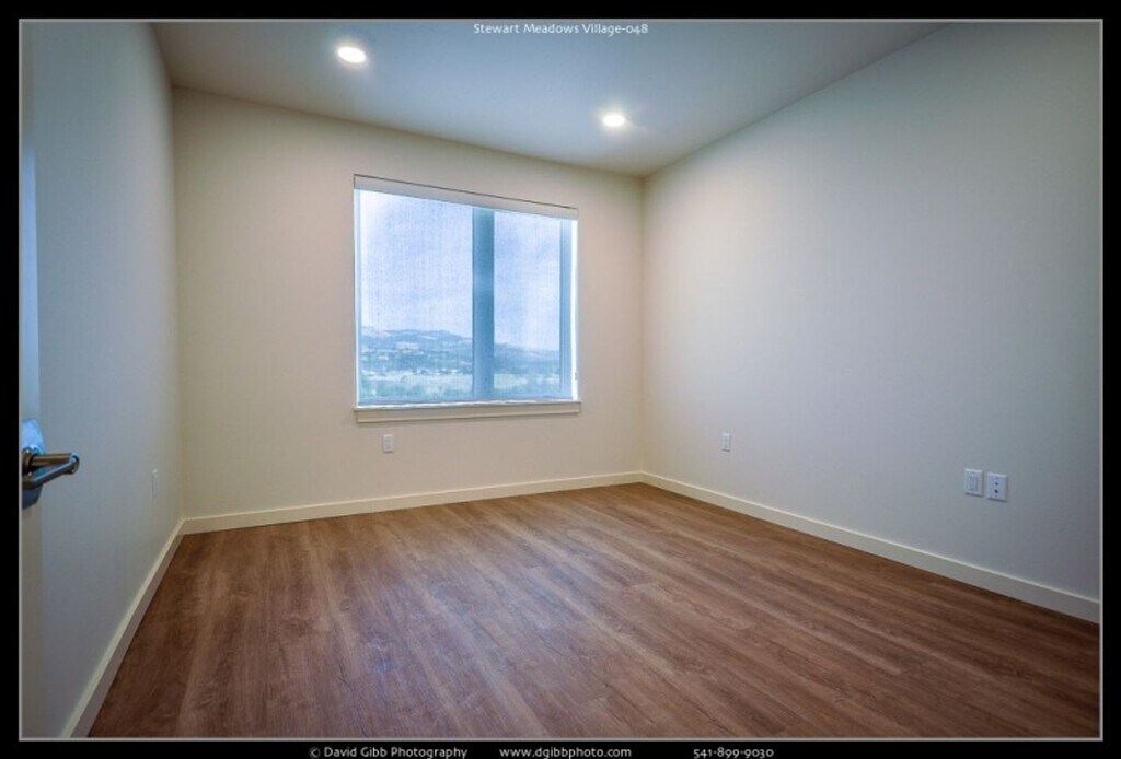 Entering on the second floor, the spacious open living area is accentuated by its floor to ceiling windows, impressive nine-foot ceilings and striking plank flooring throughout. This level of the townhouses includes a contemporary kitchen with state of the art stainless steel appliances, upgraded sinks and faucets, installed microwave, and stacking washer and dryer. A half bath powder room is also conveniently located on this level. Going upstairs, two alluring master bedrooms are situated, each with its own full bathroom that boast cast iron tubs, large showers and ample custom designed closets and shelving. With 1,379 generous square feet to move about inside, the townhouses also feature intimate outdoor balconies that invite one to take in views of the amazing Oregon landscape. Each unit comes with designated, covered two-car parking located immediately behind and below the townhouse for safe and convenient access. Stewart Meadows luxury townhouses are sophisticated, well priced, and classic. Water, sewer, garbage and wi-fi included. Tenants to pay electricity. $75 monthly amenities fee covers high-speed internet service, use of the Community Center, fitness center, pool and two rounds of golf at the adjacent Stewart Meadows Golf Course. This is a no-pet building. One-year lease term required. This is a non-smoking complex. Please call Ashland Property Management at for availability of units and to schedule a showing of this spectacular property. Rental applications can be found at Photos are representative.