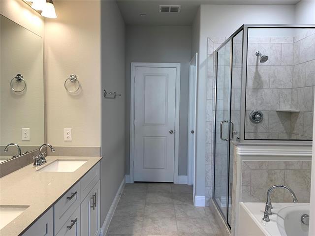 This recently constructed residence, the well-lit and airy interior is adorned with numerous windows, allowing ample natural light to permeate the living space. On the ground floor, you'll find contemporary wood-look tile flooring. The charming kitchen features elegant granite countertops, soft-close cabinets, a generously sized pantry, and stainless steel appliances, which includes a refrigerator. The master suite boasts a lavishly appointed bathroom complete with a deep soaking tub, a separate shower, dual sinks, and separate His and Her closets. Additionally, the property offers generously proportioned secondary bedrooms, a loft area, and a utility room with a washer and dryer. Storage space is abundant, with two linen closets and additional storage under the stairs. Situated in a desirable location, this property is pet-free.