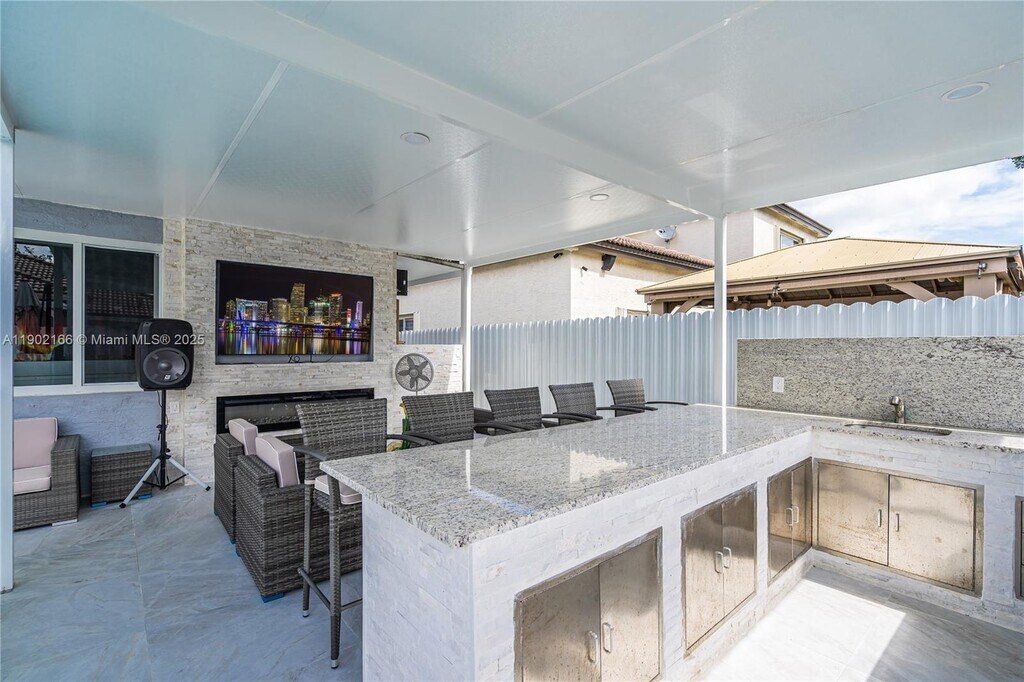 Immaculate and Elegant property located in the pristine subdivision of Milon Venture in West Country Club. Everything is New in this house.Offering 5 bedrooms and 4 bathrooms with ceramic flooring throughout the entire house, with glass doors on every bedroom and zebra blinds in all windows. Impact windows and doors all around the house.The primary bedroom with a full walk-in closet with a complete bathroom featuring floating cabinet,LED mirror,a glass shower just built-in and a gorgeous floating bathtub !Curl up next to cozy fireplace in the living room with French doors opening to a private backyard oasis ,with a new swimming pool and outdoor kitchen for family gatherings and family fun.There is a in-law quarters with separate entrance included in the price.
