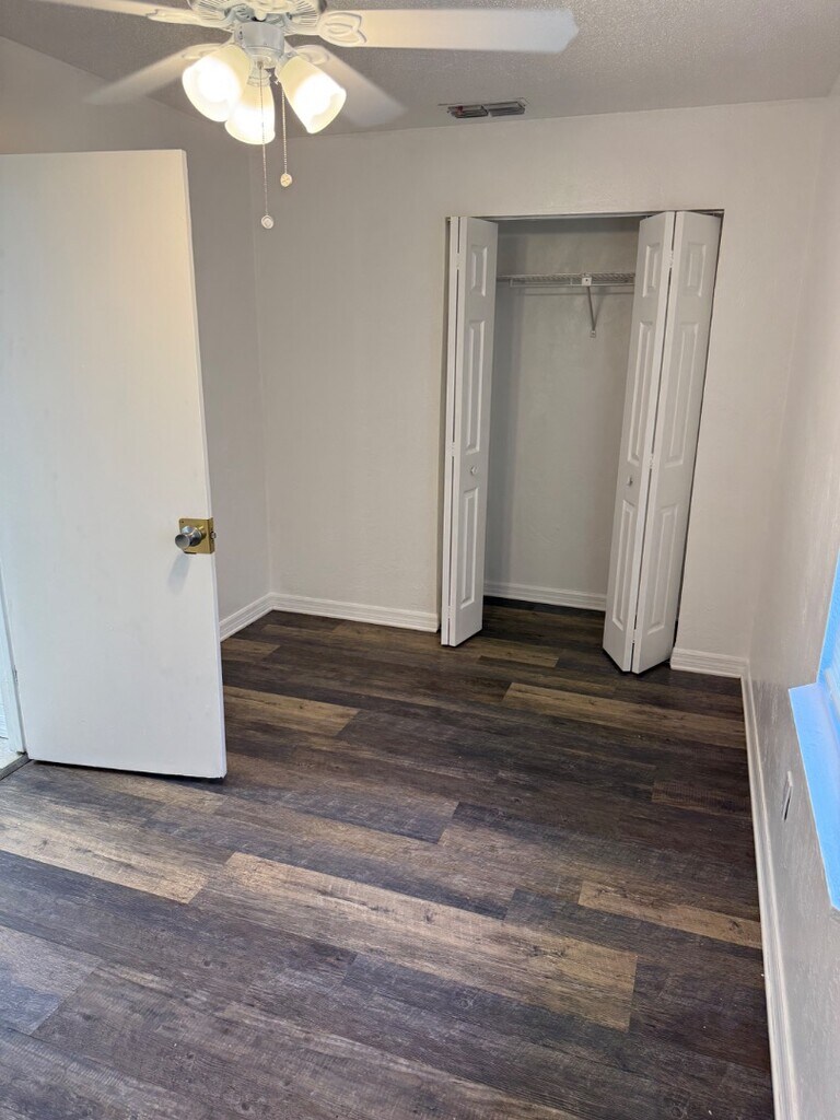 Open floor plan Master has walking big shower Close to Walmart food center 24hr security camerasLarge common area Fenced in back yard Split floor plan Washer dryer hook upNew paint New fans New blinds Ready to move in 2 assigned parking places