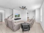 This well-cared-for two-story home offers modern comfort, flexible living spaces, and thoughtful upgrades throughout. The main level features an airy living space that opens to a stylish kitchen designed for both function and flow, complete with quartz countertops, stainless steel appliances, eye-catching cabinetry, and plenty of room for cooking and gathering. Upstairs, you'll find a spacious primary bedroom with an ensuite bath featuring double sinks and a walk-in shower. A large open loft adds valuable bonus space-perfect for a media room, workspace, or play area. Secondary bedrooms are generously sized and offer convenient access to additional bathrooms. Out back, the fenced yard and covered patio create an inviting space for enjoying time outdoors, whether relaxing after a long day or hosting friends and family. Smart home features include a Ring doorbell, smart ceiling fans, Ecobee thermostat, and a keyless front entry with fingerprint access. Situated in a newer neighborhood close to retail, restaurants, and major roadways, this home delivers both ease and modern living in one great rental opportunity.