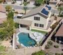 Gorgeous and updated 4 bed 3 bath home with pool in Ahwatukee! Guest room downstairs. Owner owned solar will keep electric bills low. Vaulted ceiings at first entrance adds to this homes appeal. Spacious kitchen has granite countertops,plenty of counter space,updated cabinet pulls,large island and all appliances. pacious and has abundant lighting throughout. Ceiling fans,curtains and blinds throughout. The backyard IS great for entertaining.Take a dip in the sparkling pool or have a BBQ. Extended covered back patio,storage shed,large lot. Garage has plenty of storage space,utility sink,EV charger and work bench. Plenty of mountain views. Minutes to Loop 202,schools,dining and shopping.