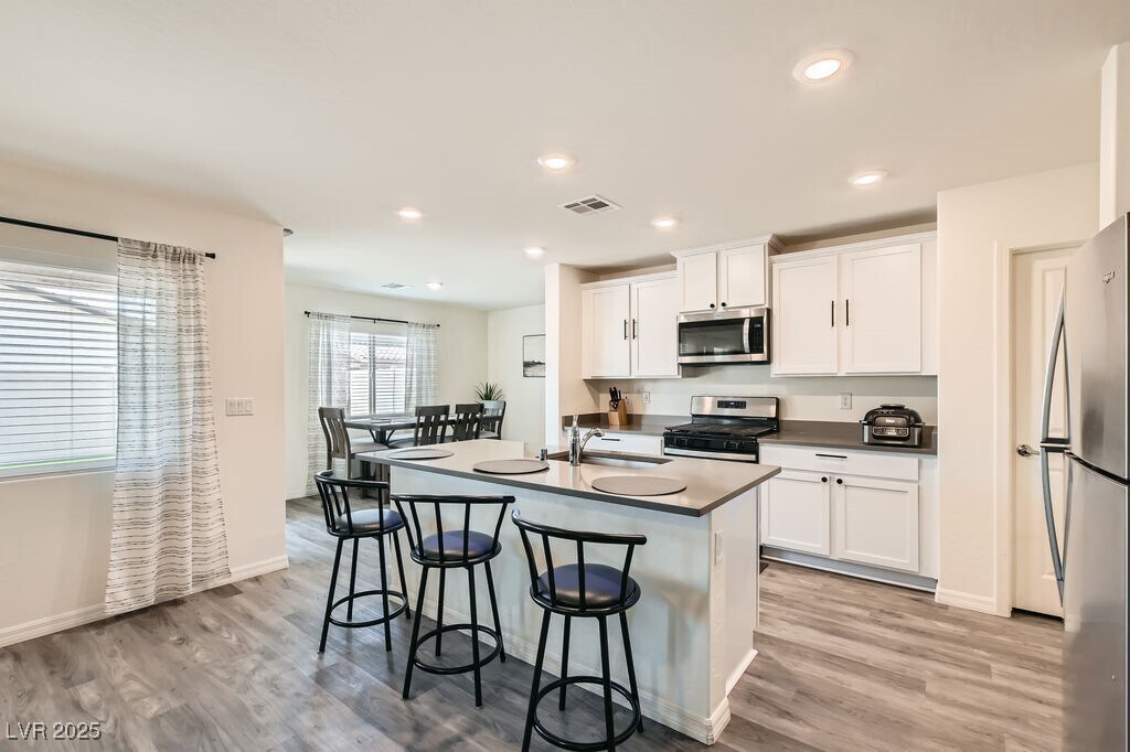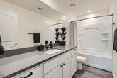 This two-story home features a stylish and functional layout with three bedrooms, two-and-a-half bathrooms, a spacious family/dining room area and an upstairs loft & laundry room. The kitchen includes sparkling quartz countertops, oversized wood cabinetry, a full suite of energy-efficient appliances and open access to the family/dining rooms, providing a seamless area to prepare meals and interact with others. In addition, this home comes with designer-selected upgrades included at no extra cost such as luxury vinyl-plank flooring, a Wi-Fi-enabled garage door opener, programmable thermostat and more.