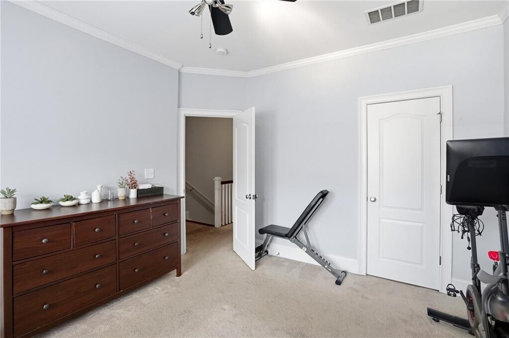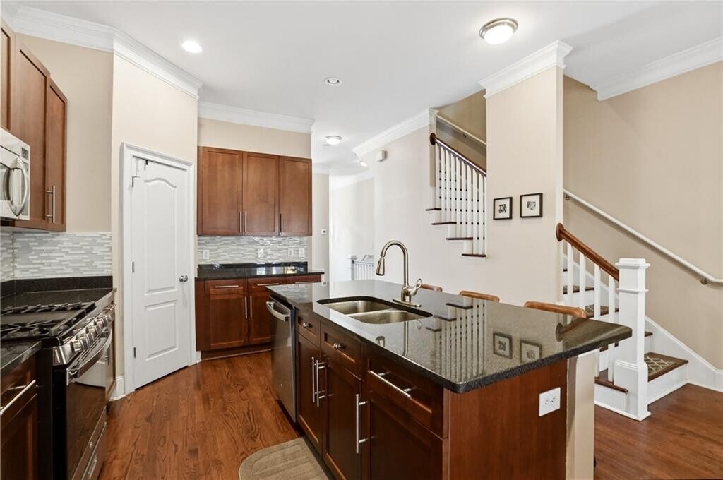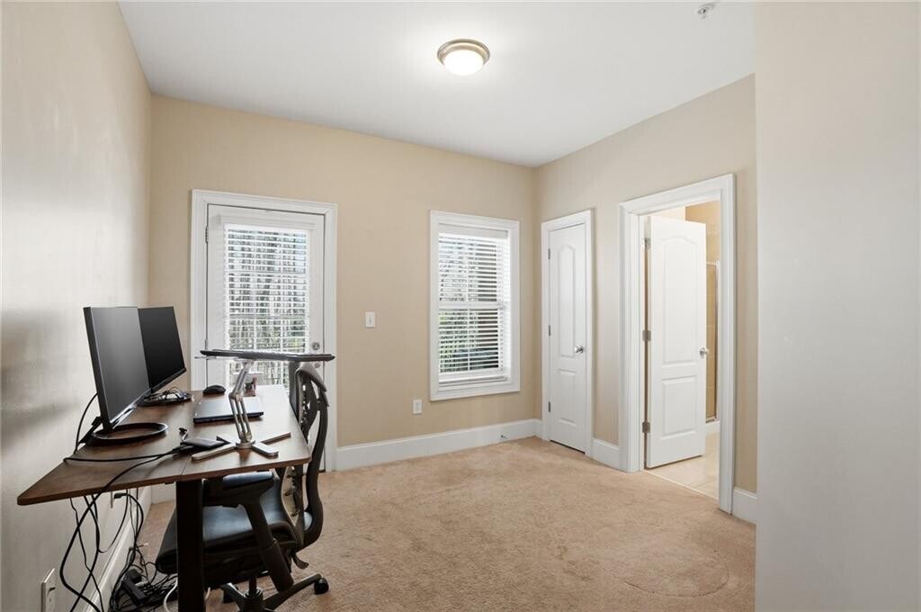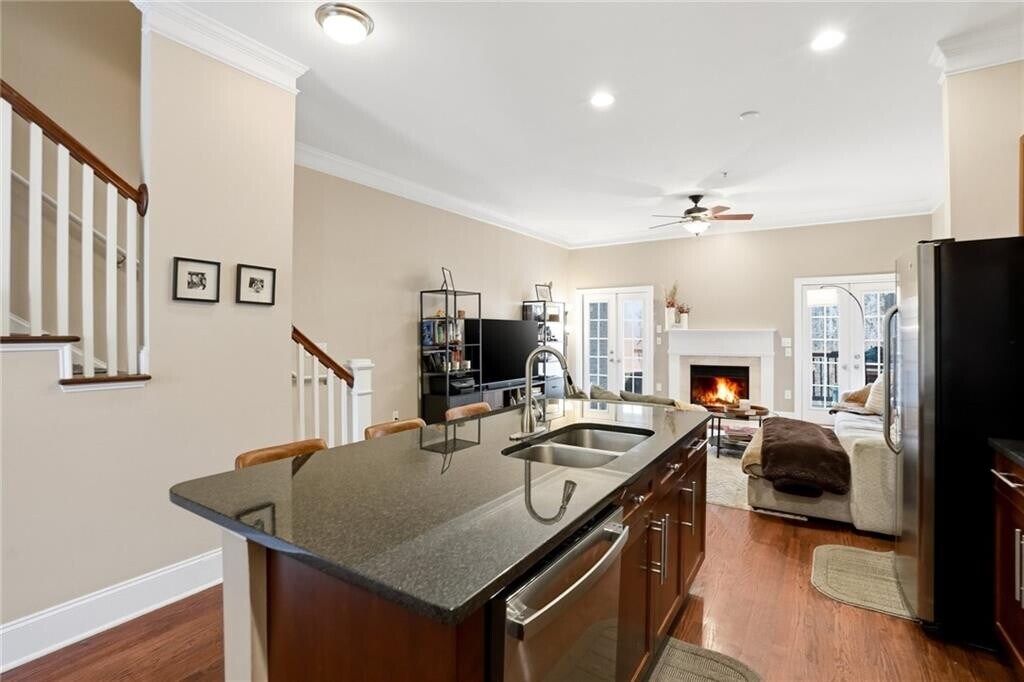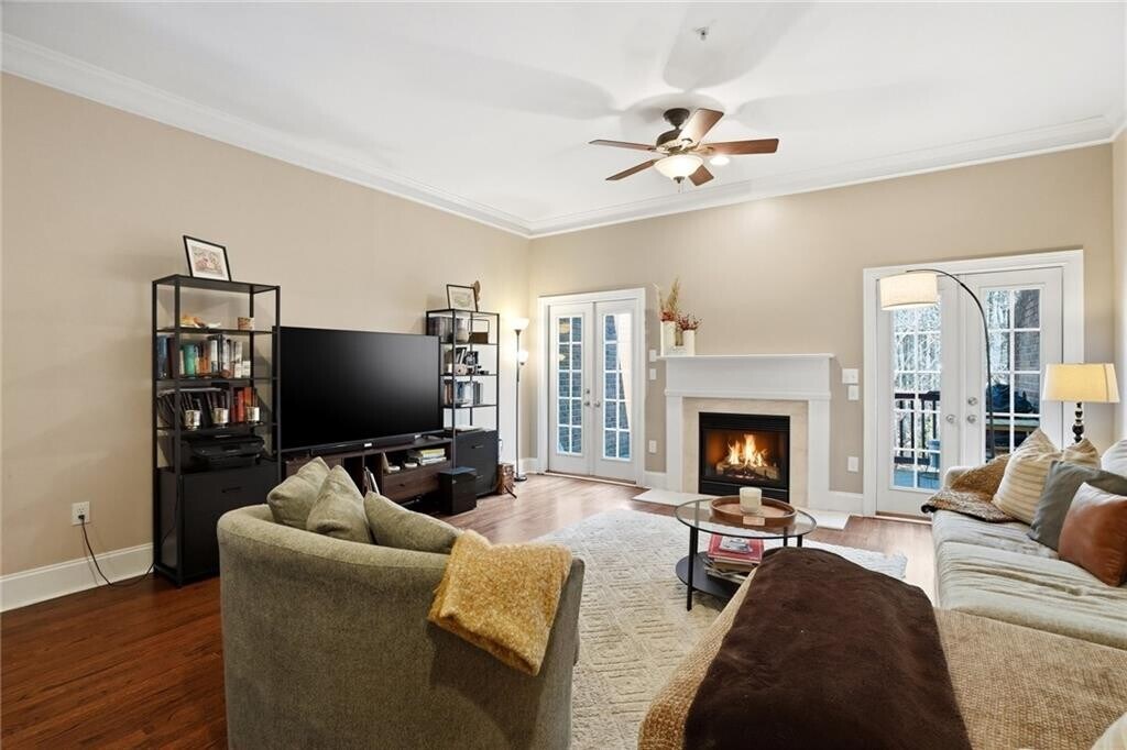 Welcome to your beautifully maintained,move-in ready 3-bedroom,3.5-bath gated townhome in the heart of downtown Smyrna,offering the perfect balance of walkable city living and peaceful,wooded privacy. Ideally situated within minutes from Truist Park (Braves Stadium) and the Battery and walking distance to Smyrna Market Village,The Five,Publix,Rev Coffee and exciting future downtown Smyrna developments,this home combines convenience in a serene,tucked-away setting. Upon entry,you are greeted by a light-filled formal dining room featuring floor-to-ceiling windows and updated lighting. The main level showcases an open-concept floor plan with 10-foot ceilings,crown molding,and hardwood floors throughout. The chef-inspired kitchen is equipped with granite countertops,abundant cabinetry,new stainless steel appliances,and a spacious walk-in pantry,seamlessly flowing into an oversized living room with fireplace. Two sets of French doors open to a private deck overlooking a wooded nature trail—one of the most desirable and tranquil locations in the community. The upper level features two generously sized bedrooms,each with ensuite baths. The primary suite offers a spa-like retreat with a jetted whirlpool tub,separate shower,dual-vanity and a large walk-in closet. The lower level provides exceptional flexibility,ideal for a third bedroom,home office,or gym,with space to accommodate a queen-sized bed. This level also includes access to a second private patio,perfect for outdoor entertaining or relaxing,along with a two-car tandem garage. Residents enjoy access to a gated community with premium amenities,including a saltwater pool,playground,herb garden,and scenic nature trails. Updates include newer HVACs,brand new hot water heater,new roof,new exterior paint. The location is unmatched,with convenient access to I-75,I-285,and GA-400,Hartsfield-Jackson Atlanta Airport,Buckhead,Midtown and Downtown and just 2 miles from Truist Park and 3 miles from downtown Vinings. Enjoy easy access to Smyrna’s shopping,dining,parks,community center,library,and experience the best of local living with Food Truck Tuesdays at Taylor-Brawner Park and Farmers Market Sundays at Smyrna Market Village. Water,trash,exterior pest control and lawn care are included in rent. Professionally managed by the owner who is a licensed real estate agent. Pets welcome. Available May 1st. MLS ID 7738415