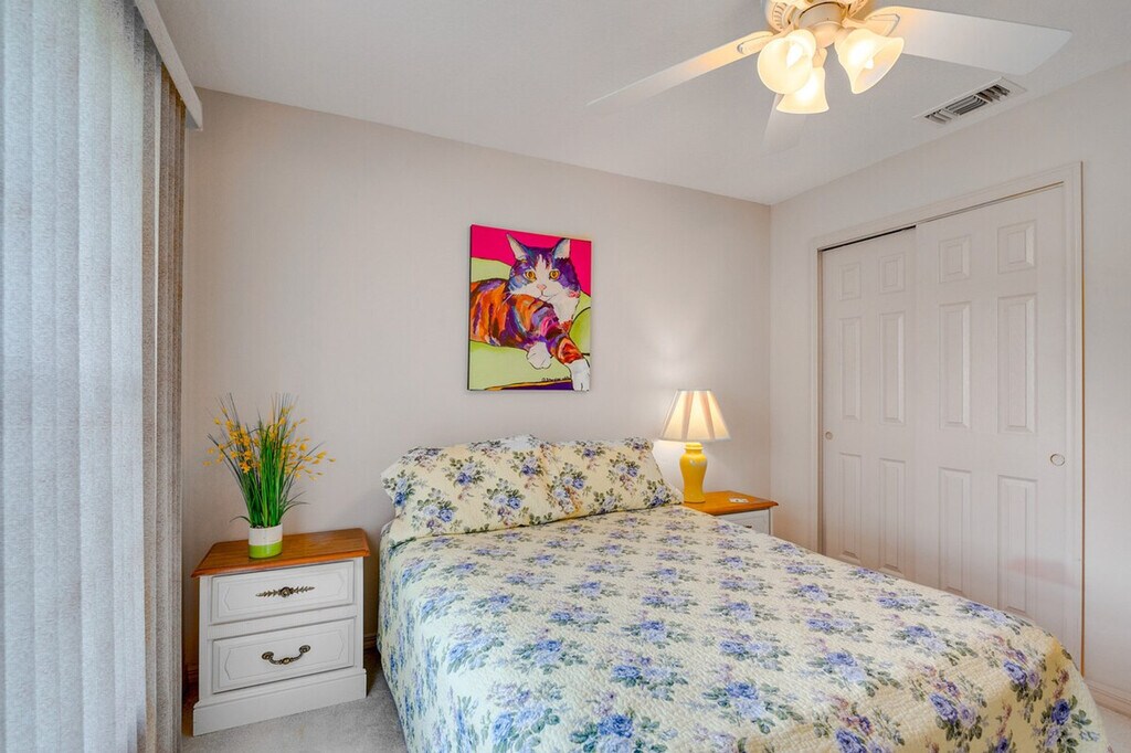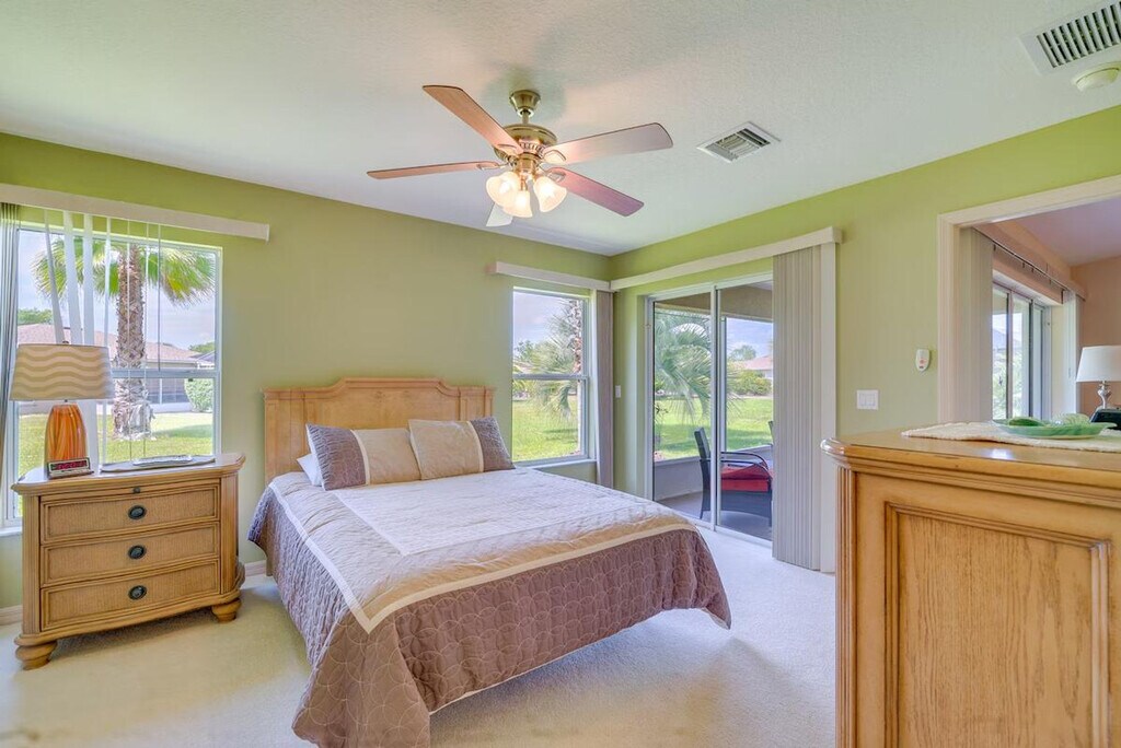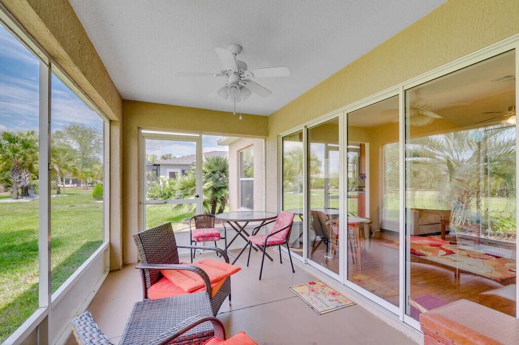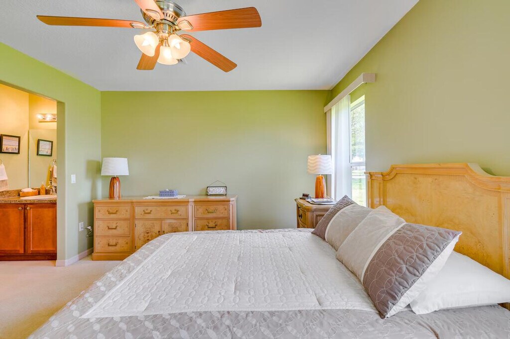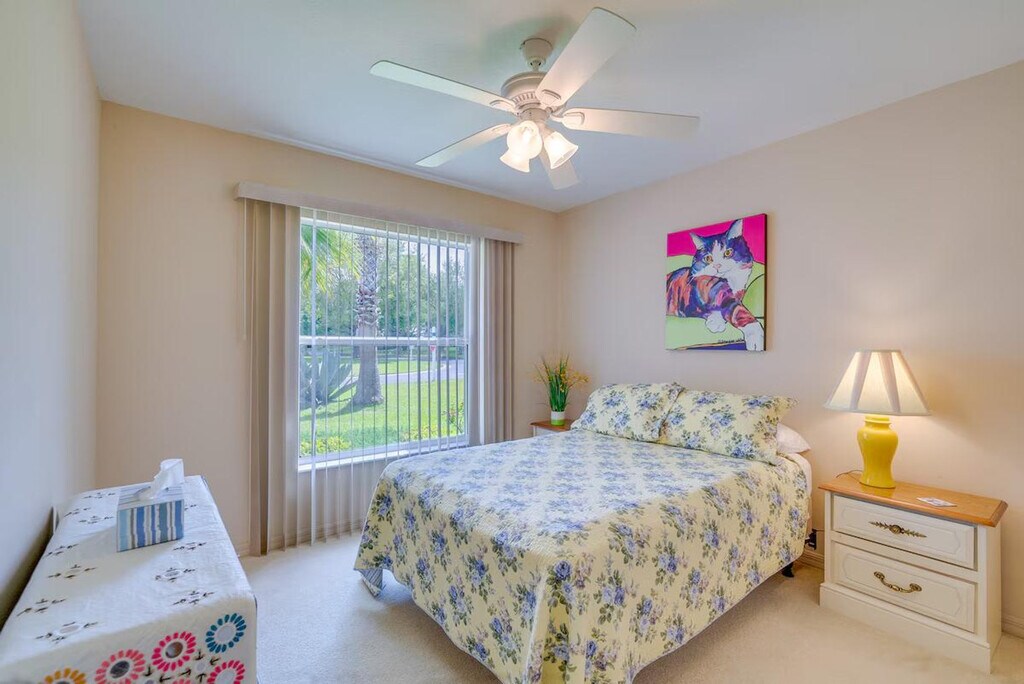 Enjoy your next leisurely escape to tropical Florida and feel at home in this Ocala vacation rental! Located in the gated SummerGlen retirement community, this home requires one step to enter. This 2-bedroom, 2-bath home features countless amenities to keep you comfortable, including central air conditioning, a Smart TV, and free Wi-Fi. The well-equipped kitchen includes a refrigerator, ice maker, microwave, dishwasher, dishware/flatware, stove/oven, cooking basics and spices, slow cooker, coffee maker, blender, and toaster. You'll also find linens/towels, beach towels, complimentary toiletries, a washer and dryer with detergent, a hair dryer, hangers, and an iron/board. Parking is available in the garage (2 vehicles), driveway (1 vehicle), and free street parking (first-come, first-served). With plenty of resort-style perks, the community offers opportunities for both relaxation and recreation, like tennis courts, a basketball hoop, a golf course, outdoor gaming, a playground, a dog park, and the Tuscany restaurant and bar, without ever having to exit its gates! This is a pet-friendly property (dogs only). Guests must be at least 55 years old to book. [SI]