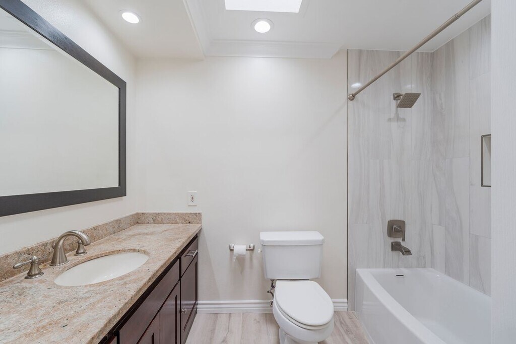 Welcome to this beautifully updated 3 bedroom, 2 bathroom home offering 1,340 sq ft of thoughtfully designed living space. The open-concept layout creates a seamless flow between the living, dining, and kitchen areas—perfect for everyday comfort and hosting guests. The kitchen features granite countertops, island, GE Profile stainless steel appliances, and a Bosch dishwasher. Newly refinished hardwood floors, fresh interior paint, dual-pane windows, crown molding, and ceiling fans in every room add to the home's charm and functionality. Natural light pours into both bathrooms through skylights, highlighting the elegant stone showers and flooring. Step outside to your private backyard oasis, complete with a custom BBQ island featuring granite counters, a built-in kegerator, refrigerator, pizza oven, ample storage, and two cozy fire pits—ideal for entertaining year-round. Additional highlights include: central air conditioning and heating, attached two-car garage with washer/dryer hookups, welcoming entryway, block walls and powder-coated side gates for added privacy. This Huntington Beach home combines comfort, style, and outdoor living in one perfect package.