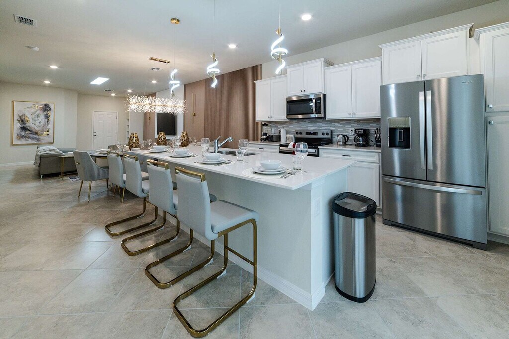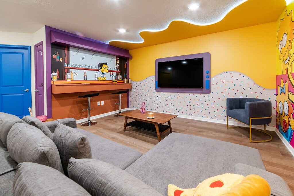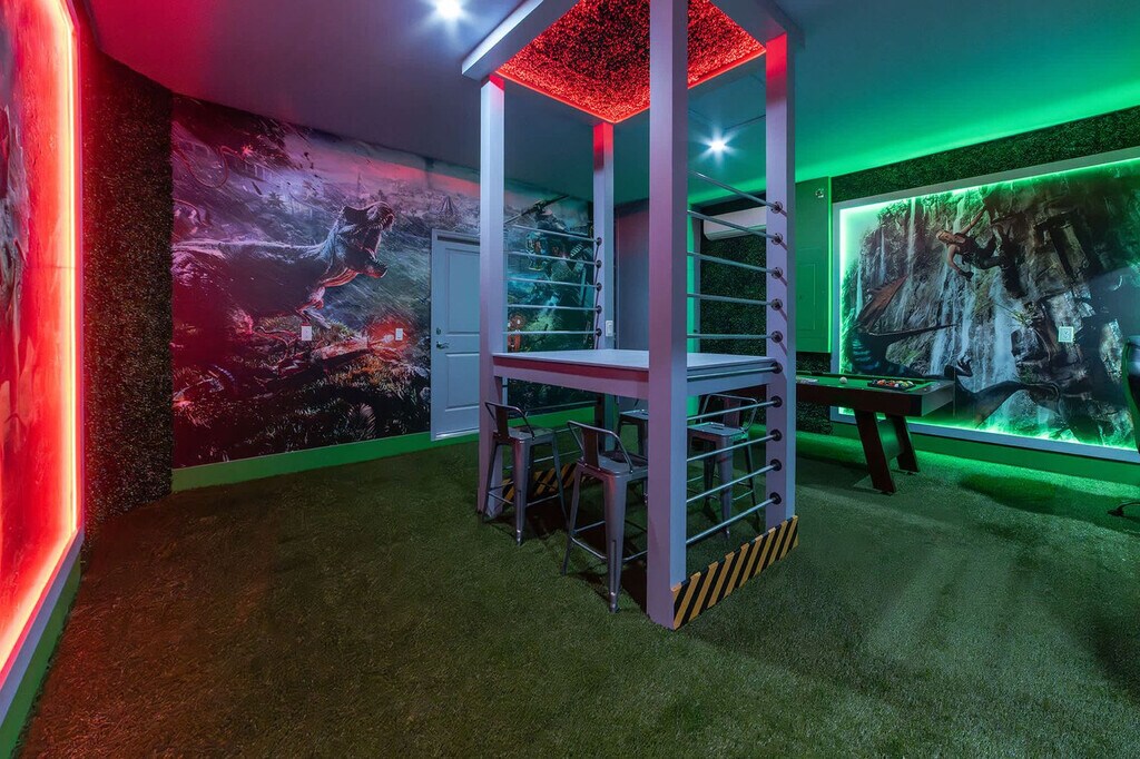Feel at home in this unique 5-bedroom home at Windsor Cay Resort, designed for an unforgettable Orlando vacation. This home features three themed bedrooms—Toy Story, Minions, and Mickey—and two elegant king suites. Entertainment options include a Jurassic Park-themed game room with pool and arcade games, and a Simpsons-inspired family room. For convenience, the home includes laundry facilities with washer and dryer machines, free Wi-Fi, and a welcome kit with bathroom and kitchen amenities. Pool heating and use of the barbecue grill are available for an additional fee. Located in Windsor Cay Resort, this home is minutes from Orlando’s famous theme parks, shopping, and dining. Guests have access to top-tier amenities like a resort-style pool, lazy river, water slides, and a fitness center. Quiet hours are observed between 10:00 PM and 8:00 AM. Guests are responsible for replenishing bathroom and kitchen supplies. [SI]