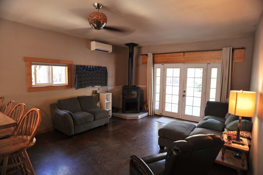 This unique and inviting A-frame home offers 2 bedrooms, 1.5 bathrooms, and a beautifully updated interior. The open floor plan highlights the home’s rustic charm with modern upgrades, including new appliances and stunning butcher block kitchen counters. Enjoy cooking in the well equipped kitchen with tons of counter space and a gas range! The primary bedroom, full bathroom, and laundry are conveniently located on the main level. Just off the kitchen, enjoy a bright sunroom—perfect for relaxing, dining, or indoor plants. To keep you comfortable year-round, the home is equipped with a mini split system for efficient heating and cooling, along with a wood stove that works great for cozy winter nights. Set on 1 acre of fully fenced and gated property, the home also includes a detached garage and small storage shed for tenant use, providing plenty of space inside and out. Features Include: 2 Bedrooms / 1.5 Bathrooms A-Frame Style with Open Floor Plan Recently Updated with New Appliances Beautiful Butcher Block Kitchen Counters Primary Bedroom, Full Bath, & Laundry on Main Level Amazing Sunroom off the Kitchen Mini Split System + Wood Stove for Heating & Cooling Detached Garage + Small Storage Shed Fully Fenced & Gated 1 Acre Lot A rare find, this property combines cozy A-frame style with modern updates and room to spread out. Offered by: La Pine Property Management Services LLC