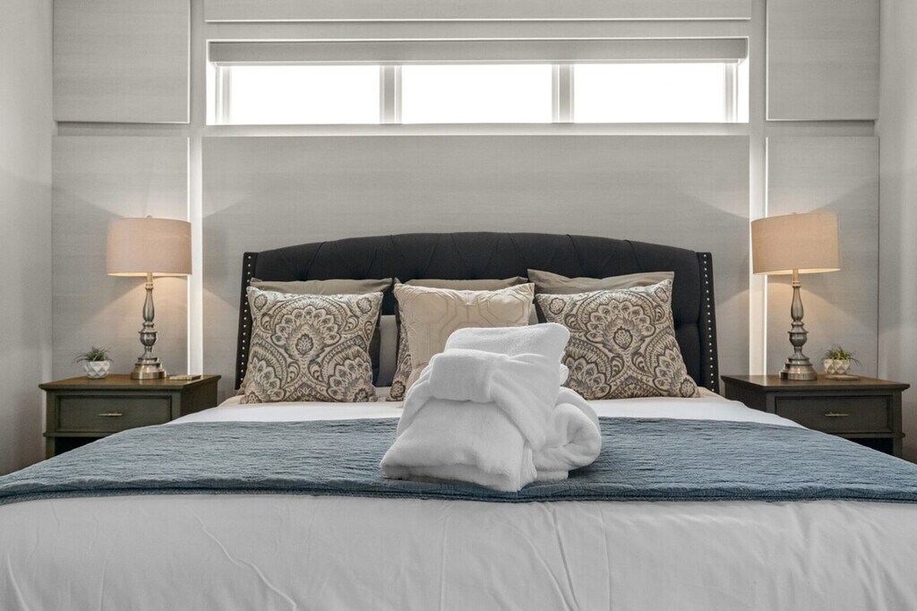 Experience Fayetteville like a local in this stunning 3-story townhome, complete with a luxurious open-concept living room, state-of-the-art kitchen, and three private bedrooms. Enjoy full access to the rooftop patio, featuring a hot tub, fire pit, BBQ grill, bar area, lounge seating, outdoor dining, and sweeping views of Fayetteville. The apartment boasts a spacious open-concept living area with a large TV, ample seating, and a garage door leading to the rooftop balcony. The fully stocked kitchen includes high-end amenities such as a Keurig, air fryer, blender, and kettle. The dining area comfortably seats six, with additional seating at the kitchen bar. The vaulted wood panel ceiling adds a touch of elegance to the living room. The rooftop balcony is a highlight, featuring a hot tub, fire pit, BBQ grill, mini fridge, bar area, seating for 11 people, and dining for 4, all under charming string lights with breathtaking views of Fayetteville. Located just steps away from local favorites like Rick's Bakery, Arcadia Retro Arcade, Mockingbird Kitchen, and Tacos 4 Life, this apartment offers convenience and accessibility. A short 5-minute drive takes you to Downtown Fayetteville and the University of Arkansas, where you can explore local restaurants, shopping, and more. Check-in is any time after 3:00 PM. Unauthorized parties or events will incur a $1000 fine, and pets are not allowed, with a $400 fine for any violations. Unauthorized checkout delays will incur a $100 per hour fine. This is a non-smoking home, and smoking will result in a $1000 fine plus the cost of any necessary smoke remediation. Quiet hours are from 10:00 PM to 10:00 AM.
