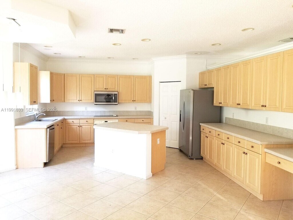 Beautiful and spacious two-story home located in the prestigious gated community of Riviera Isles. This 3-bedroom, 2.5-bath residence features an open-concept kitchen with stainless steel appliances, new HVAC (2025), fresh interior paint, and a bright, functional layout ideal for everyday living and entertaining. Enjoy a private fenced backyard with a covered patio, perfect for relaxing or hosting. The oversized primary suite offers a large private balcony, dual walk-in closets with custom wood cabinetry, and a spa-style bathroom with a soaking tub and separate shower. An additional flex space adjacent to the primary bedroom can be used as a nursery, office, or sitting area. Additional highlights include tile flooring on the main level, laminate flooring in the bedrooms, and carpeted stairs for added comfort. The home also includes a two-car garage. Riviera Isles offers resort-style amenities including a clubhouse, pool, fitness center, basketball courts, and playgrounds. Conveniently located near I-75 and the Turnpike, with easy access to shopping, dining, and top-rated schools. MLS # A11991633