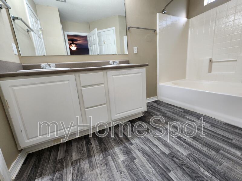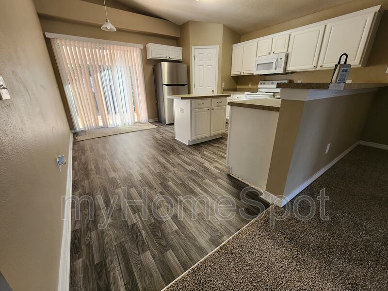 This 1600 sq foot home has 3 bedrooms and 2 full baths with a open floor plan that has room to spare. Large living, dining and kitchen areas. Includes fridge, stove, built in microwave, dishwasher and kitchen island. The master bath has a double vanity, garden tub, and walk in closet. 2 car garage and utility building in back for additional storage. Covered patio out back. Back of property backs up to greenbelt so plenty of privacy. Sorry no pets. $50 tenant lease prep fee
