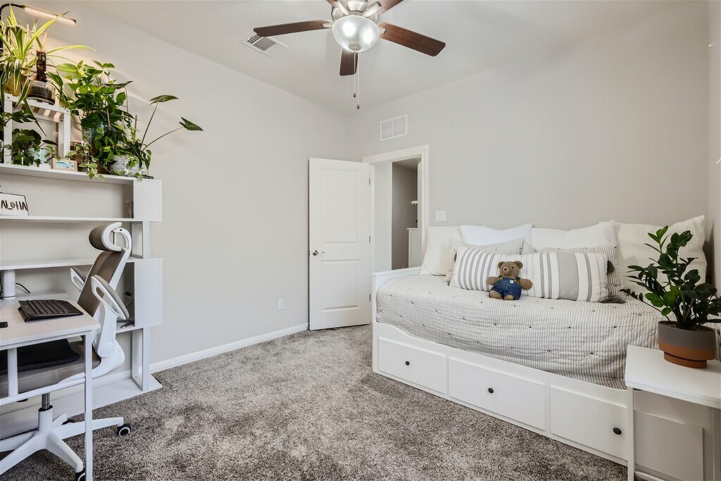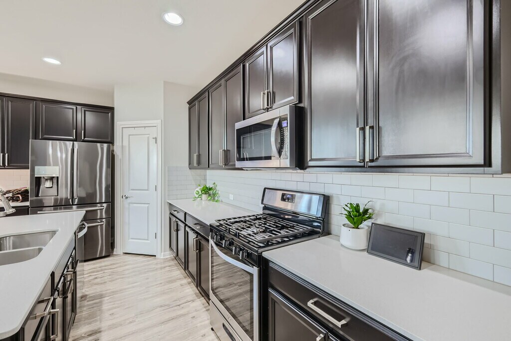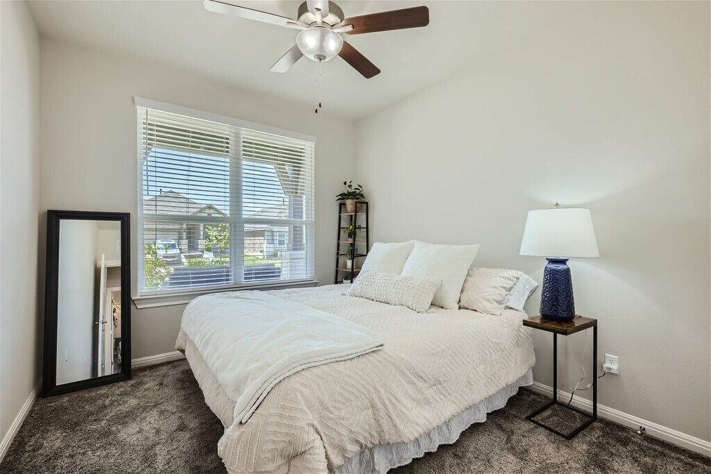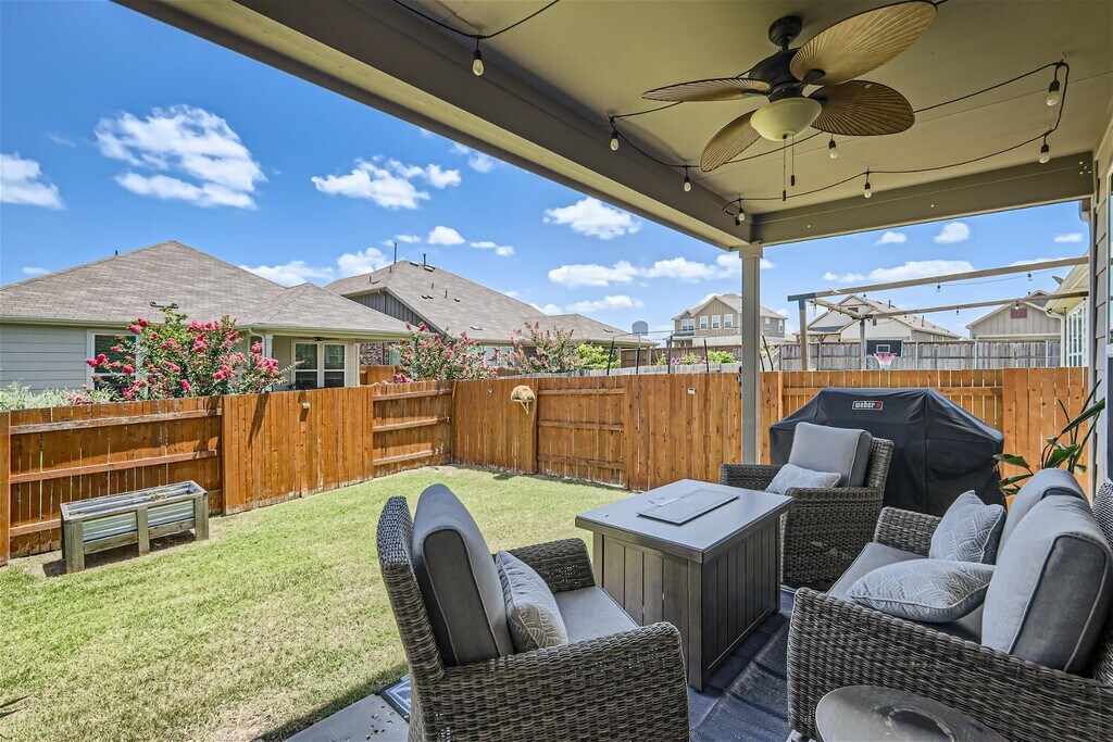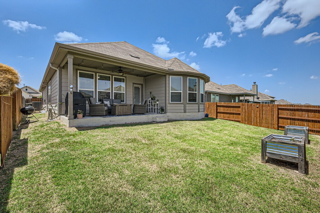 Welcome to 159 Bayberry in the vibrant community of Sunfield in Buda! This single-story, three-bedroom, two-bath home features an open concept living area where the dining, living room, and kitchen flow seamlessly together, filled with natural light. The primary bedroom suite is exceptionally spacious, providing a luxurious retreat within this inviting home. You will enjoy entertaining and making dinner with friends and family in the kitchen with tons of storage and counter space. The secondary bedrooms are nice sized and there is added storage and counter space next to the laundry room! Have your morning coffee on the covered front porch and enjoy a glass wine on the coveted back patio. Living in Sunfield means enjoying top-notch amenities like a lazy river, splash pad, community pool, and numerous parks and trails. Plus, with its prime location, youre just a short drive from the excitement and cultural richness of downtown Austin. Embrace the perfect blend of modern design, comfort, and convenience at 159 Bayberry.