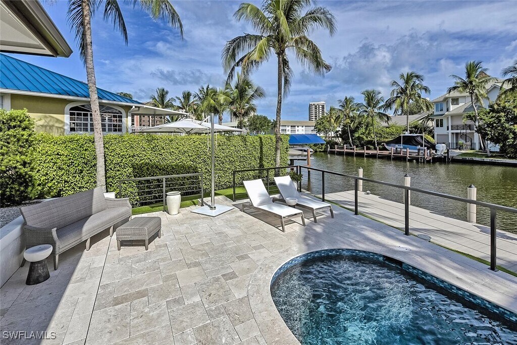 Available from Mar 15th through Mar 31,2026 Season at a discounted rate or off season from May 7 through the end of November. This one of a kind 4BR/3BA turnkey furnished single-family pool/spa home in the Conners off Vanderbilt is truly a hidden gem. Comes with its own boat dock and a location that is hard to beat. This unique coastal home is professionally decorated,where modern design and luxury awaits you. The well-equipped gourmet kitchen with double ovens,six-burner gas range,stand alone ice maker and state of the art appliances will satisfy the most demanding gourmet cook. Spacious great room provides ample room for entertainment. The master suite offers king size accommodations,while the guest rooms offer queen and two twin beds for those occasional overnight guests. Enjoy the sun,and the myriad of outdoor activities,kayaking,boating,pool,spa,or just lounge around your private pergola. Conveniently located within walking distance of Vanderbilt Beach,minutes from World class shopping and dining,Mercato,Waterside Shops and the Ritz Carlton. Look no further,you have just found your perfect destination to have a vacation of a lifetime. Pets are considered with approval and a pet fee.