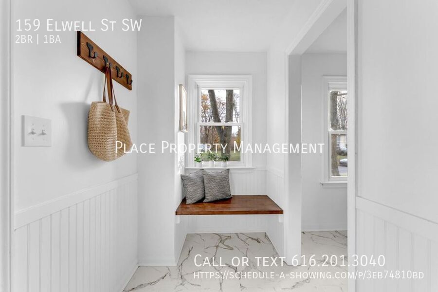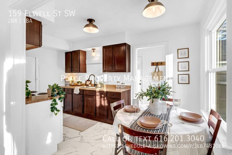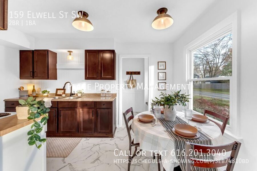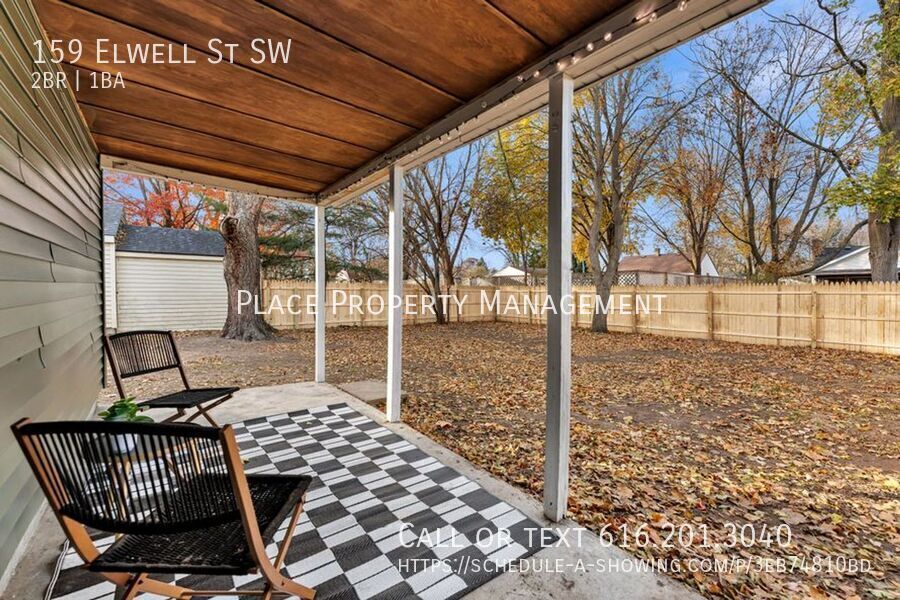 This freshly renovated 2-bedroom, 1-bath ranch is tucked away in a SW Grand Rapids neighborhood and ready for you to move in. Inside, you’ll find a bright living room, a cozy kitchen with dining space, two comfortable bedrooms, and a beautifully updated bathroom. New flooring, fresh carpet, and central A/C make the home both stylish and comfortable. Outside, enjoy a fenced backyard, a covered patio perfect for relaxing, and a 1-stall detached garage. Washer and dryer are included for added convenience. Details: ~Tenants pay all utilities ~Small dogs welcome (non-aggressive breeds only) $500 Deposit and $50 Monthly ~ Home is STAGED - Furnishings not included Schedule a showing today and make this charming house your next home! 1 Stall Unattached Garage Central A/C Fenced In Yard Large Backyard Luxury Vinyl Flooring Natural Light New Carpet Updated Washer/Dryer