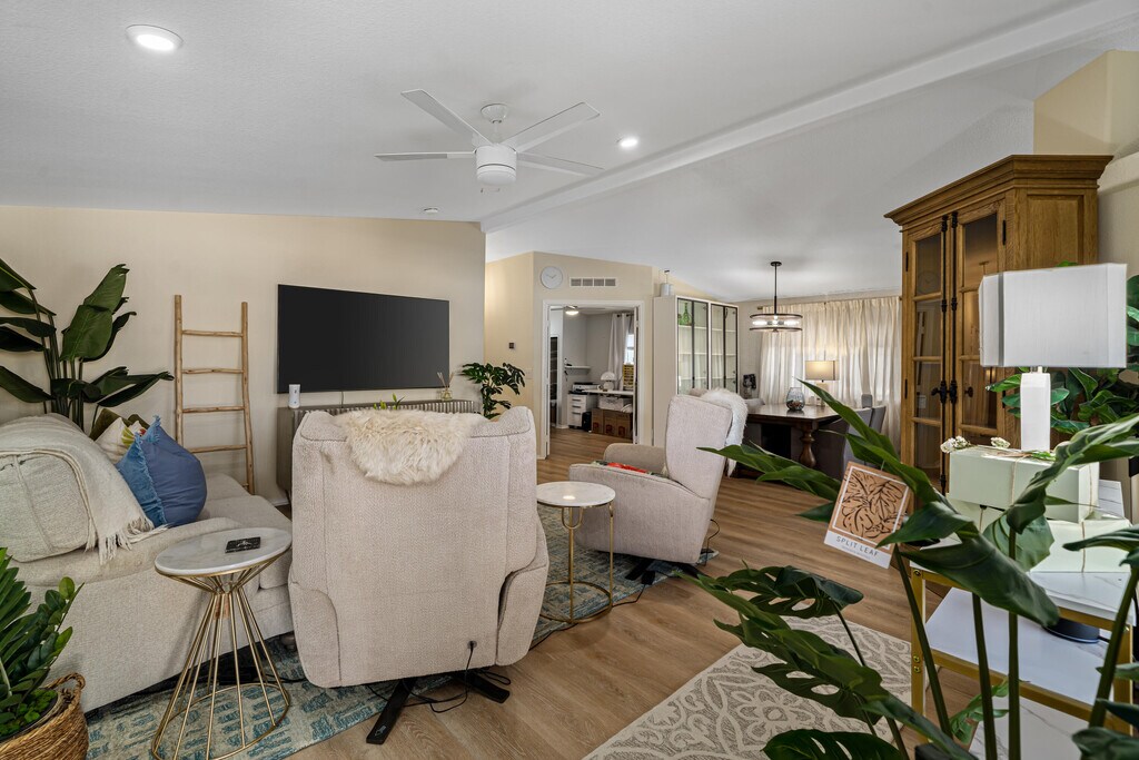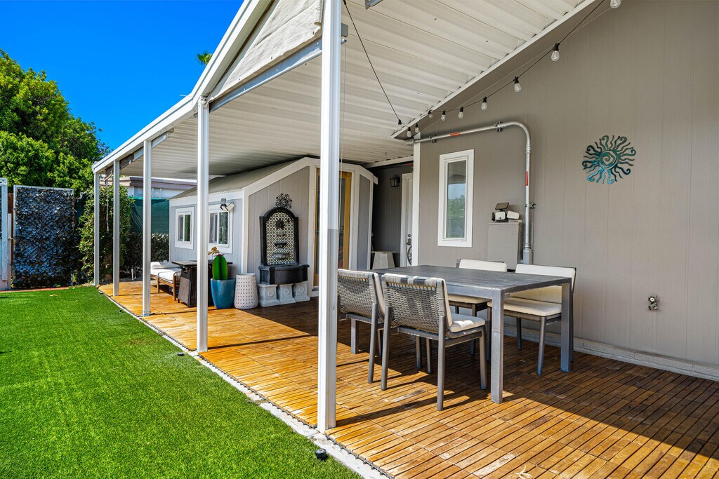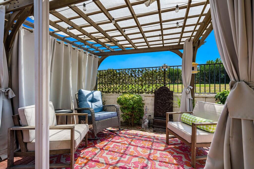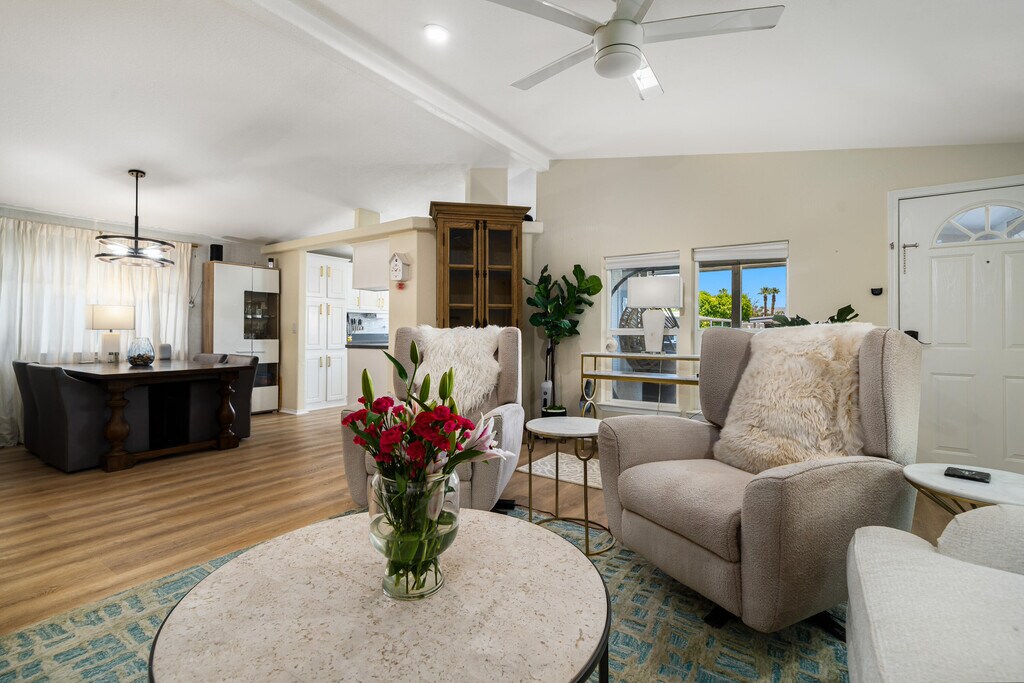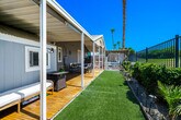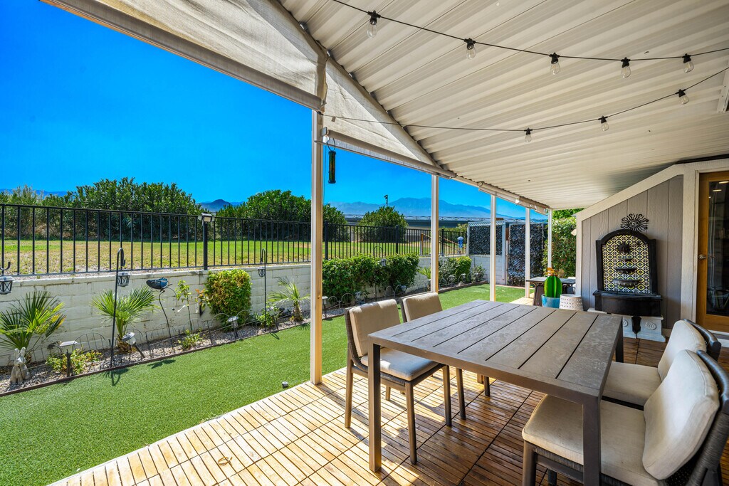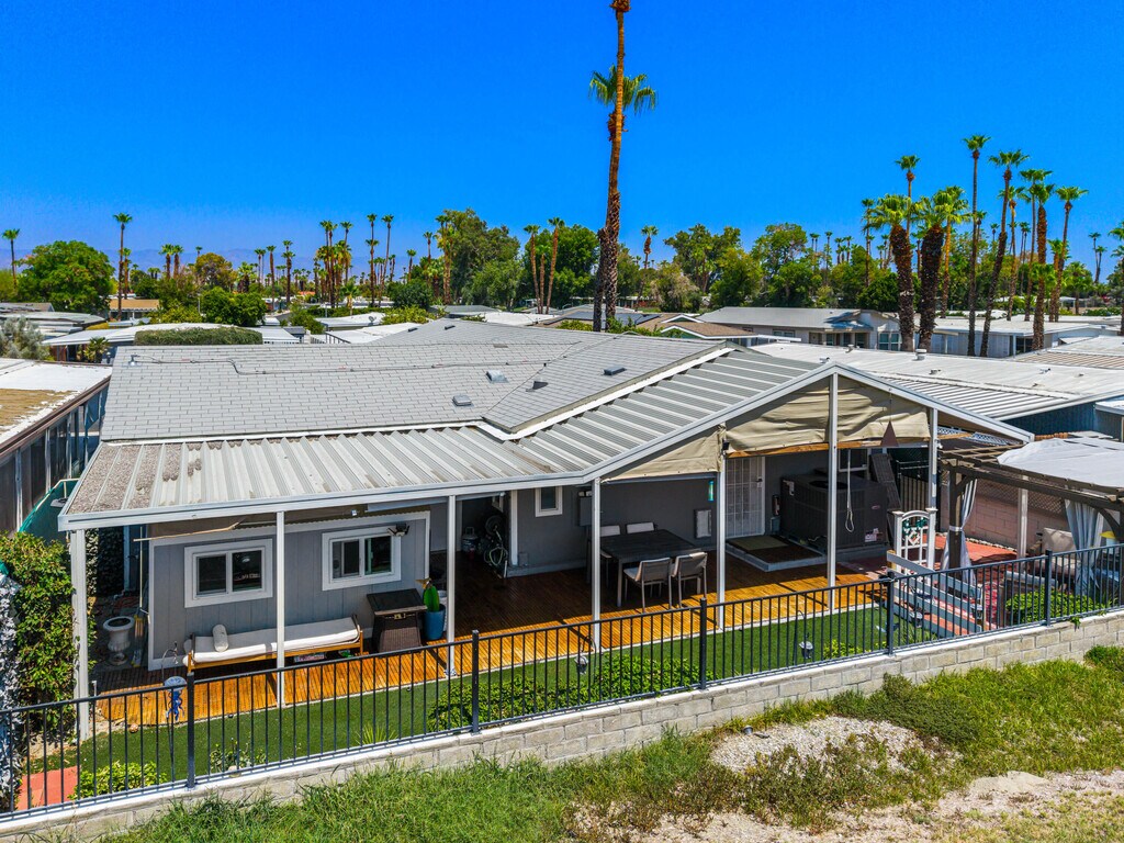 This spacious home offers 3 bedrooms,2 baths,plus a versatile bonus room that's currently used as an office. With 1,512 sq. ft. of open-concept living,the home feels even larger thanks to its bright and airy layout. Built in 2004 and stylishly updated in 2023,the home features modern touches such as quartz countertops and fresh interior and exterior paint. A brand-new AC system was also recently installed,ensuring year-round comfort and efficiency. Enjoy a cozy front porch perfect for relaxing,or step into the large backyard with a covered patio and additional pergola designed for outdoor dining and entertaining. There's a bonus room off the patio that can be used as an office,lounge,or extra storage. Practical features include an attached 2-car garage with ample storage,a double-wide driveway (no tandem parking),and a pergola over the driveway to help keep cars cool in summer. Energy efficiency comes easy with leased solar panels and a backup power wall to keep your home running smoothly even during outages. Date Palm Country Club is a vibrant 55+ gated community in south Cathedral City,offering top-notch amenities including an 18-hole golf course,driving range,tennis and pickleball courts,multiple pools and spas,a clubhouse,fitness center,restaurant,pro shop,and a dog park.