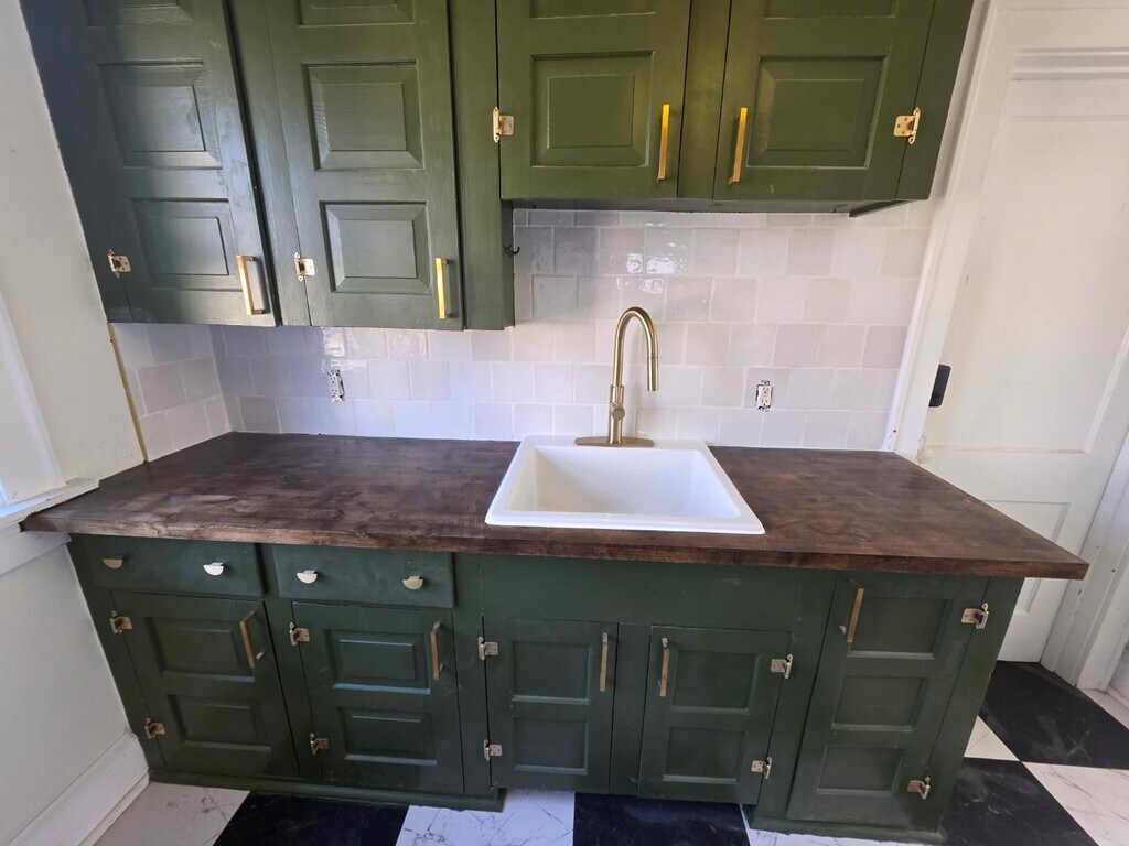 Beautifully renovated 1 bedroom, 1 bathroom apartment featuring mid-century inspired finishes and modern updates throughout. This bright unit offers dark hardwood floors and a spacious floorplan on the first floor. The tenant has a private front porch to enjoy the solitude of this quiet neighborhood.The mid-century inspired kitchen features deep green cabinetry, updated countertops, statement tile backsplash, and gorgeous brass fixtures, including a stunning milk glass chandelier. The fully remodeled bathroom offers contemporary fixtures and clean finishes. Unique to this historic property is in-unit laundry, with a stackable washer/dryer in a cute little mud room off of the kitchen. The mudroom features a 2 separate closets for plenty of additional storage!Located on a quiet street just minutes from Downtown Akron, local hospitals, and universities — perfect for young professionals or medical residents seeking character and convenience This spacious 1 Bed, 1 Bath apartmen...