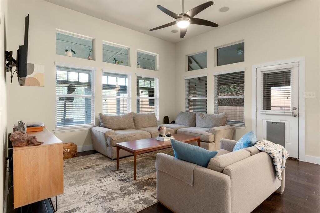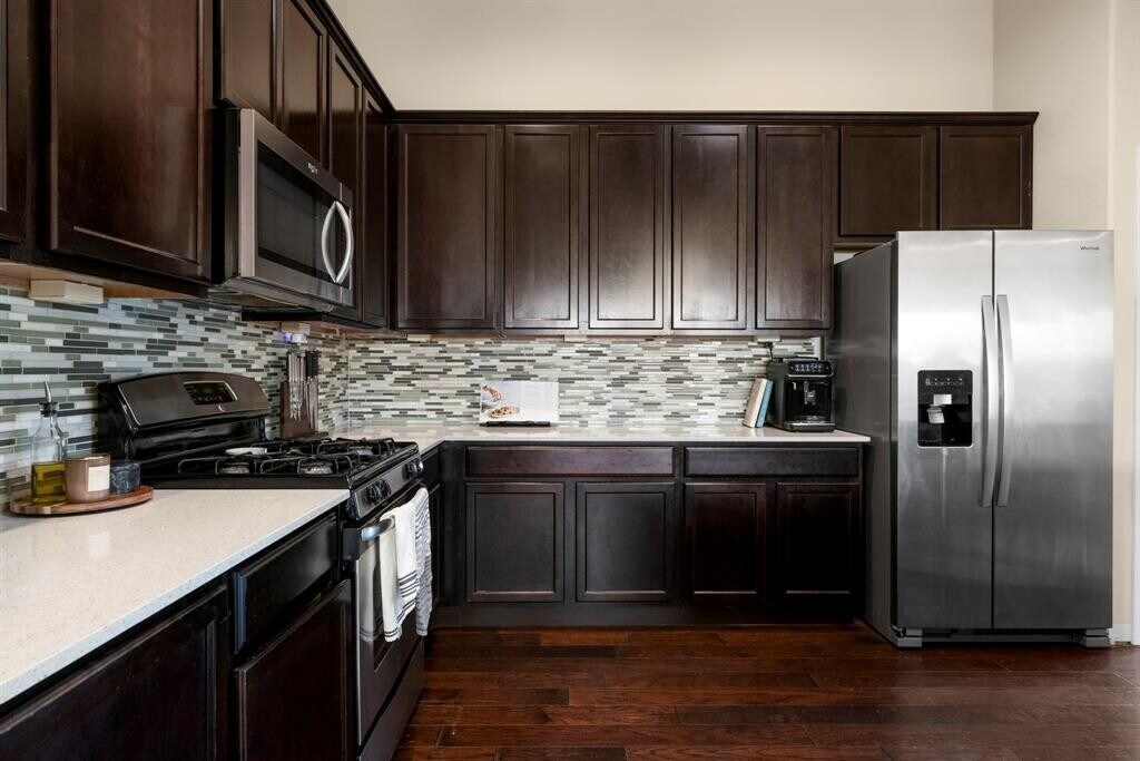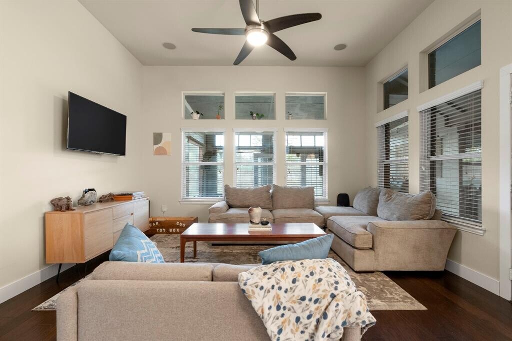 Welcome to Sunfield – where comfort, style, and convenience meet. This beautifully upgraded home offers a rare combination of custom features, a spacious layout, and an unbeatable location within one of Buda’s most desirable communities. Fully loaded with upgrades, this residence showcases a full stone elevation, wood floors, quartz countertops, stainless steel appliances, surround sound speakers, and contemporary light fixtures throughout. The open-concept design provides effortless flow between living, dining, and kitchen spaces—ideal for everyday living or entertaining. Step outside to enjoy peaceful evenings on your covered back porch overlooking a fantastic backyard on an oversized lot—perfect for pets, play, or simply relaxing. Car enthusiasts and hobbyists alike will love the three-car garage, offering plenty of space for vehicles, storage, or a home gym. A full sprinkler system and lush landscaping make maintenance a breeze. Located in a prime spot within the neighborhood, this home offers easy access to I-35, Toll Road 45/130, and FM 2001, putting Austin, Kyle, and San Marcos all within quick reach. Living in Sunfield means resort-style amenities right at your doorstep, including two lazy rivers, a lap pool, kiddie pool, dog park, fishing ponds, walking trails, and an onsite lifestyle program that keeps the community buzzing with events. Plus, enjoy the convenience of an on-site elementary school. Move-in ready and waiting for you—come experience all that Sunfield living has to offer!