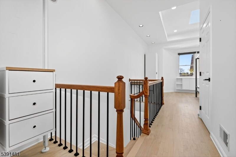 Fabulous recently updated and freshly painted 1 bedroom, 1.5 bathroom loft style unit with hardwood floors and central air and heat in an ideal location. Enjoy two separate levels of living and rejuvenation space with an open floor plan with the living room with two levels, kitchen area with stainless steel appliances and a convenient powder room on the first level. The upstairs retreat provides skylights at the top of the 11 foot ceilings, a luxurious bathroom with both a shower and jacuzzi-like tub, an office nook, laundry space and additional storage. Conveniently situated near buses to NYC, Journal Square Path (approx 1 mile), downtown Jersey City and Hoboken Terminal.