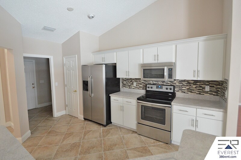 THIS FULLY FENCED 4 BEDROOM, 2 BATHROOM POOL HOME FEATURES ALL TILE AND WOOD FLOORING THROUGHOUT, UPGRADED KITCHEN WITH STAINLESS STEEL APPLIANCES, GLASS TILE BACKSPLASH, BAR COUNTERTOP, AND BREAKFAST NOOK... SPACIOUS LIVING ROOM WITH VAULTED CEILING, SPLIT BEDROOM FLOOR PLAN, LARGE MASTER SUITE WITH DOUBLE SINK VANITY, WALK-IN SHOWER, AND WALK-IN CLOSET... OVERSIZED COVERED PORCH, SCREENED IN POOL & SPA, AND FULLY FENCED, PRIVATE BACKYARD... SEPARATE LAUNDRY ROOM, 2 CAR GARAGE WITH ELECTRIC OPENER. LOCATED IN THE POPULAR PINE GROVE NEIGHBORHOOD, WITH EASY ACCESS TO SCHOOLS, SHOPPING, TOWN CENTER, BEACHES, MAJOR HIGHWAYS, DAYTONA BEACH AND HISTORIC ST AUGUSTINE... SOLID LANDLORD! AVAILABLE FOR IMMEDIATE MOVE-IN. $2650 ON 3-YEAR LEASE $2750 ON 2-YEAR LEASE $2850 ON 1-YEAR LEASE