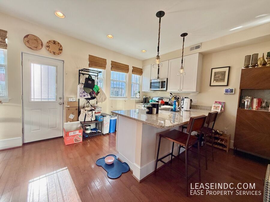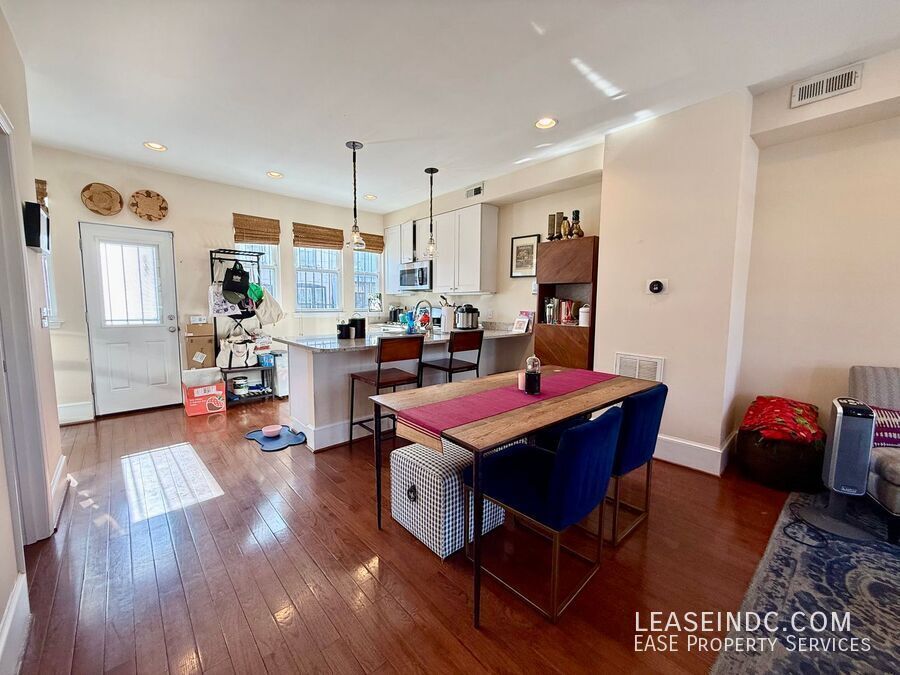 Welcome to 159 V Street NE, a beautifully updated three-bedroom, three-and-a-half-bath home that seamlessly blends historic charm with modern upgrades. Spanning more than 1,600 square feet across three fully finished levels, this home offers generous living space, including a versatile lower-level in-law suite ideal for guests. A private fenced-in rear patio creates the perfect outdoor retreat, and off-street parking for a compact car adds everyday convenience. With character, flexibility, and thoughtful updates throughout, this is a home you won’t want to miss. Home Features: Welcoming front porch overlooking quiet V Street NE. Beautiful hardwood flooring throughout main and upper levels Living room that is flooded with natural light Plenty of space for a large dining table Kitchen has been outfitted with granite countertops, stainless steel appliances and bar seating Convenient powder room on main level Small deck off of kitchen leads to the fenced-in private patio, perfect for entertaining! Upstairs leads to the spacious primary bedroom with a completely renovated ensuite bathroom Good sized second bedroom towards front of home Second full bathroom has dual access via the second bedroom and the hallway Fully finished lower-level in-law suite boasts an additional living room, third bedroom, kitchenette and full bathroom Washer/Dryer in unit Parking: Off-street parking for one small/compact car behind home (alley is tight, so larger cars likely won't fit). Utilities: Tenants are responsible for all utilities (gas, water, electric). Lease Terms: Available immediately. Minimum 12 month lease. Application fee is $35 and includes a credit check. Security deposit equal to one month's rent due upon lease singing. Pets considered on a case-by-case basis pending approval by Owner and with an additional $50/month pet fee. Location: Eckington is a quiet, residential neighborhood that is just a quick commute away from the heart of downtown DC. Steps away from the great Yang Market for breakfast sandwiches and last minute groceries. A quick walk to the great restaurants in Bloomingdale including Red Hen, Boundary Stone, Big Bear Cafe, Baccio Pizzeria and more. Also convenient to the great shops at Union Market and walkable to the Rhode Island Ave and NoMa Metro Station