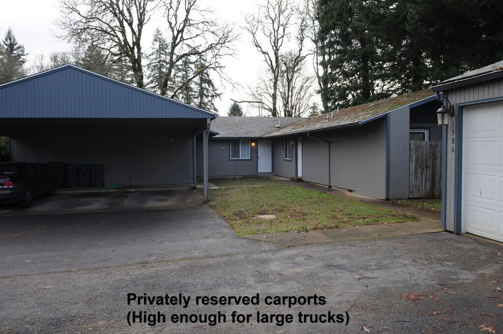 Quiet, private, garage/carport/backyard, great South Salem area 2 bedroom, 1 bathroom, 2 covered patios, 1 covered carport, 1 detached garage Very privately configured ground-level triplex Large one-car garage with plenty of room for hobbies and storage Covered large-car/truck carport Very private and fully fenced backyard Two covered patios; one off the living room, the other off the bedroom Located in a great South Salem neighborhood in Sunnyridge Heights Quiet, Peaceful. Close to I-5, Shopping, Schools Absolutely no smoking Quiet & established residential neighborhood Dishwasher, stove, refrigerator, dishwasher, blinds Wonderful area Schools: Schirle, Judson, Sprague district Washer/dryer hookups inside Individual room thermostats for heat control Tenant responsible for utilities.