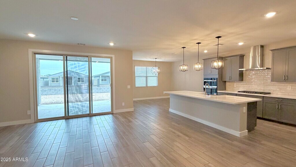 Beautiful Brand-new home featuring 5 bedrooms,each with a walk-in closet and ceiling fan & 3 full bathrooms. No back neighbor for added privacy. Spacious 3-car garage. Gourmet kitchen with premium cabinetry,quartz countertops,and tile backsplash. Interior upgrades include spa-style shower,wood-look tile flooring in main living areas,and upgraded carpet in all bedrooms. Appliances included: washer,dryer,refrigerator,and tankless water heater. Energy-efficient construction designed to reduce utility costs. Community offers exclusive swimming pool,club house and resort-style amenities. Convenient location near shopping,dining,and entertainment. (Backyard landscaping with artificial grass to be installed within 10 days. ceiling fans,and utility sink will be installed within one week.) Easy access to Loop 303 and conveniently located near TSMC,the area's largest semiconductor employer.