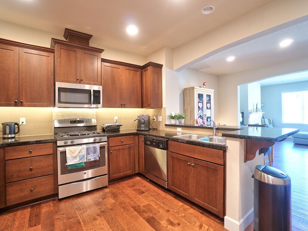 This beautifully maintained townhome is ideally located near the heart of the Bethany community in NW Portland! Conveniently situated near highly rated schools, easy access to Bethany Village for shopping, restaurants, parks, running trails and major commuter routes, this home offers comfort, style, and convenience all in one. Entry features a welcoming covered patio, perfect for outdoor seating or a small table and chairs! Open-concept main level with high ceilings and beautiful engineered hardwood flooring throughout! Spacious living room with large windows allowing in abundant natural light, plus a cozy gas fireplace! Modern kitchen with tile countertops, ample cabinetry, and a large eating/breakfast bar! Kitchen includes stainless steel appliances and a gas range! Upper level features soft carpet throughout the bedrooms and hallway! Primary suite offers vaulted ceilings, oversized windows, and generous space! Primary ensuite bathroom includes dual sink vanity, oversized glass shower, luxurious soaking tub, and a LARGE walk-in closet! Guest bedrooms feature high ceilings, soft carpet, and sizeable closets! Convenient main-level utility room with full-size washer & dryer included for tenant use! Attached 2-car garage with two openers, plus ceiling-mounted storage racks! Spacious driveway allows parking for 2 additional cars, along with a private alley-access driveway! Energy-efficient ductless mini-split heating and cooling system with units on each level! Tankless water heater for on-demand hot water! Walk to nearby schools! Close to parks and neighborhood playgrounds! Easy commute to Nike, Intel, and downtown Portland! Close to local grocery stores, restaurants, and Bethany Village shopping and dining! Tenants are responsible for utilities: Water/Sewer, Gas, Electric, and Trash. Renters Insurance required with minimum $100,000 liability coverage prior to lease signing. No Pets Allowed Property No Smoking Property / No Smoking Allowed Schools: Sato Elementary, Stoller Middle, Westview High School. Tenants to confirm schools. Annual Household Income: 2.5x ($73,500+) Credit Score: 650+ Security Deposit: 1.5 month rent Evictions & Bankruptcies: None For detailed screening criteria, showings and applications, please email us and we will provide details of additional info and instructions.