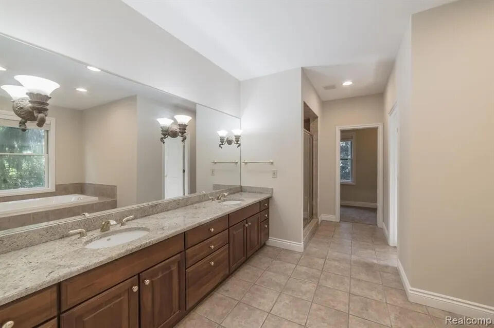 Stunning 4-bedroom,5-bath brick home offering nearly 4,900 sq ft of exceptional craftsmanship plus a 3,000 sq ft walk-out basement. Situated in a prime area close to dining,shopping,parks,and everyday conveniences,this home blends luxury and comfort. The main level features a large kitchen with custom cabinets,granite counters,and a 48'' range that opens to a breakfast nook and a spacious living room with a natural gas see-through fireplace. Impressive arches connect the living room,kitchen,foyer,and huge dining room,while a large office provides excellent workspace and flexibility for everyday needs. The main-floor primary suite includes 11' ceilings,a jetted tub,shower,dual-sink vanity,and a massive his-and-hers closet. Upstairs are three oversized ensuite bedrooms plus a vaulted flex room ideal for an office or extra bedroom. The walk-out basement offers a bar,huge windows,and abundant entertainment space. Rental Available Now in a fantastic,convenient location.