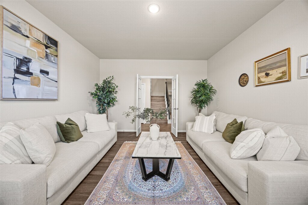 Welcome to this stunning home nestled in the sought-after Stone Creek Ranch community of Hockley! FIVE BEDROOMS WITH 2 BEDROOMS DOWN! NO CARPET! Step into a grand foyer with soaring ceilings and gleaming floors,no carpet throughout,creating a fresh,modern feel. A private office with French doors offers the perfect work space,while the open-concept layout is designed for effortless living and entertaining. The kitchen shines with ample modern cabinetry,dual ovens,and an extra-large island with bar seating,all flowing seamlessly into the spacious living area and breakfast nook. The primary suite features beautiful bay windows and an ensuite bath with dual sinks and an oversized walk-in shower. Upstairs,the game room impresses with tray ceilings and provides the perfect flex space,along with 3 additional bedrooms. Outside,enjoy a fully fenced backyard complete with covered patio and green space. Contact your agent for a private viewing today! MLS# 54869137