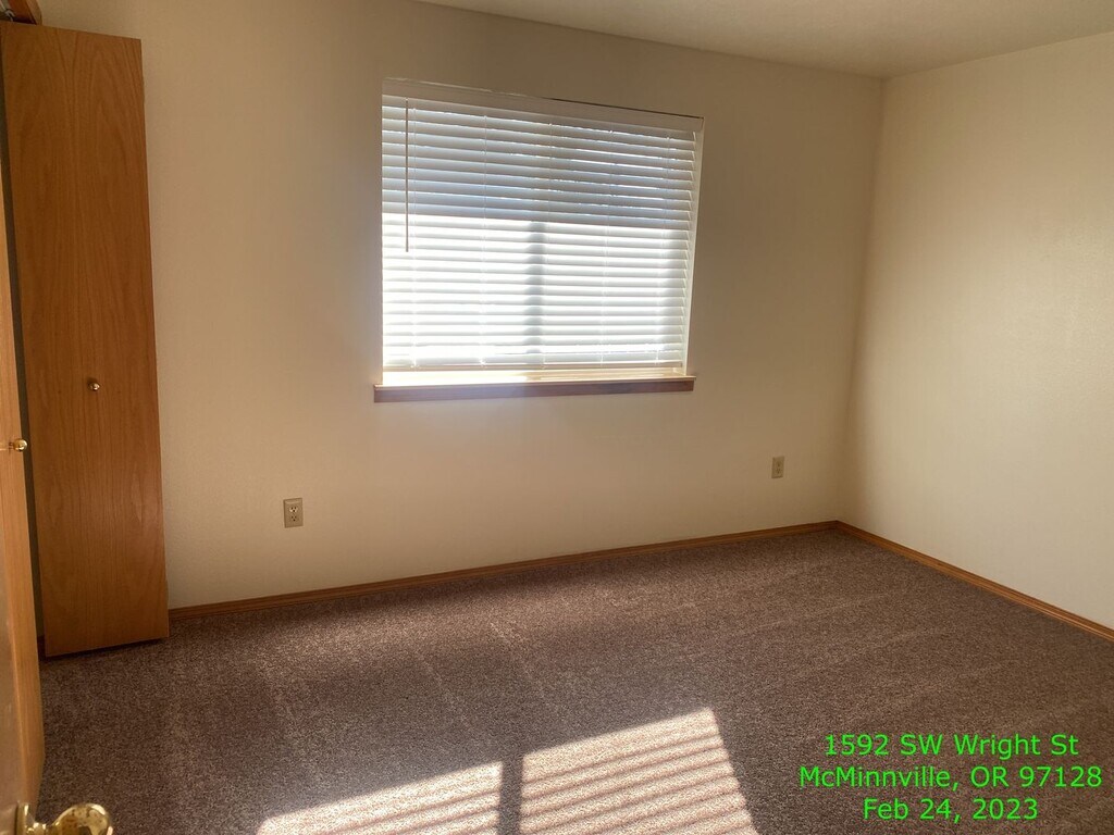 Welcome to 1592 SW Wright St, a well-maintained single-level duplex located in McMinnville, OR. This home offers 850 square feet of functional living space, including two comfortably sized bedrooms and one full bathroom. Built in 1996, the property has been thoughtfully cared for and includes washer and dryer hookups for added convenience. An attached one-car garage provides parking and additional storage. While the yard is not fenced, there is outdoor space available for casual use and relaxation. Yard maintenance and utilities are the responsibility of the tenant. One small pet may be considered with approval. Discover comfortable, practical living at 1592 SW Wright St—an inviting place to call home. **The “Date Available” represents the projected vacancy date and is provided for scheduling purposes only. Actual move-in readiness is subject to change based on maintenance, inspection, and preparation requirements. Please contact the Wild Haven office with any questions** - $50 per adult applicant. A complete, individual application is required for each adult age 18 and older. - Applicants must have a verifiable net monthly income of at least 2.5 times the monthly rent. - Applicants must provide 3 to 5 years of verifiable rental history, excluding stays with family or friends. Alternatively, ownership of a home or a qualified cosigner may satisfy this requirement. - Deposits typically range from 125% to 200% of the monthly rent, depending on screening results. - All our properties are strictly non-smoking. Tags: Amity, Carlton, Dayton, Lafayette, McMinnville, Newberg, Sheridan, Yamhill Area