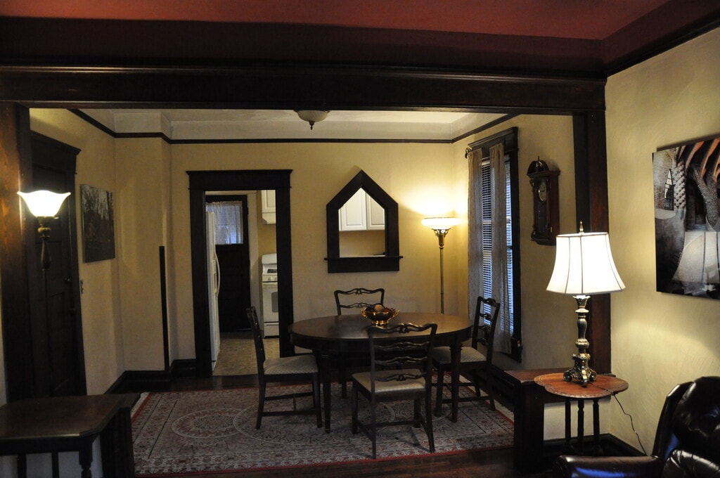 4 block Duck walk to campus. Ideal home for roommates/students. Furnished 5 bedroom house with 2 bathrooms, dishwasher/washer/dryer, hardwood floors, rich darkwood interior, unique spiral staircase and antique light fixtures. 2 front and back porches to enjoy the surrounding rose bushes and yard. Safe bike storage in garage plus 2 parking spaces. Rent $4,300/month, 1 year lease, first and last month rent. Available August 16, 2026.