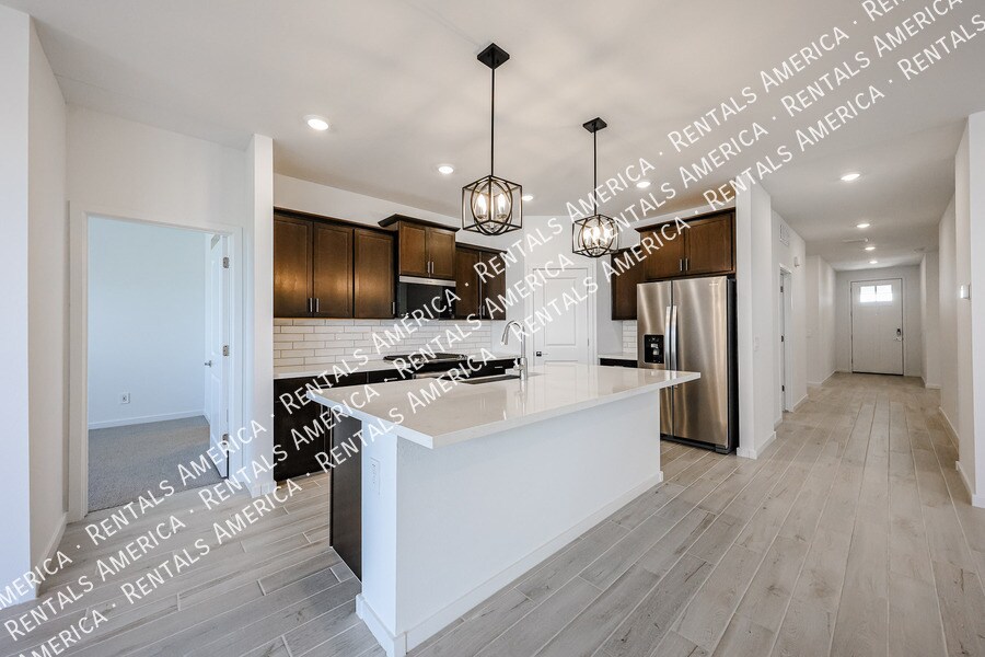 This brand-new never lived in residence offers 4 spacious bedrooms and 2 modern bathrooms. Open-concept floor plan with abundant natural light. Gourmet kitchen featuring sleek countertops and stainless-steel appliances. Primary suite with large walk-in closet. Professionally landscaped backyard ideal for entertaining or relaxing outdoors. Small dogs up to 25 lbs. Schedule your showing today. One Time Admin Fee: $300, Pet Deposit: $300/pet (if applicable), Service Fee: 2%. $39/month Resident Benefits Package, Helping Heroes Discount Available! Assigned Outdoor Parking Carpet Ceramic Tile Community Pool Disposal Dogs Allowed Dryer Garage Pets Allowed Washer