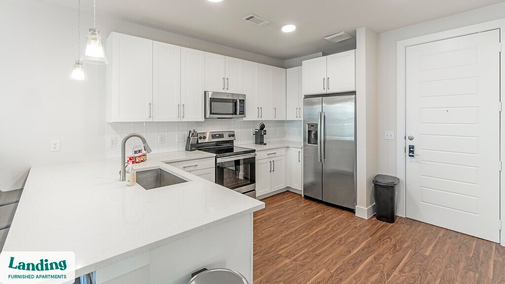 Landing is a top-rated, fully furnished apartment network with thousands of homes across 250+ U.S. cities. With premium amenities, a mobile app to manage your stay, and 24/7 support. Our apartments have everything you need for monthly and longer stays.: 6-Month Minimum base rent: starts at $1920/mo 12-Month Minimum base rent: starts at $1775/mo Landing's apartments at La Tierna are designed for comfortable, easy living, with the ability to stay as long as you like. All Landing apartments include: - Fast Wi-Fi - Stylish furnishings - Fully-stocked bathroom - Smart TVs - Comfortable bed - Professionally cleaned - Guest support Stay longer for cheaper! The longer you stay, the bigger your discount. Price advertised is for a 12-month stay, including all utilities and fees, and may vary based on availability. We manage multiple units at this property. While all feature a similar style and furnishings, the layout and specific design elements may vary slightly from the photos provided. Some of the nitty-gritty: a background check and proof of income are required; we're completely smoke-free; pet-friendly options are available; parking is subject to availability.