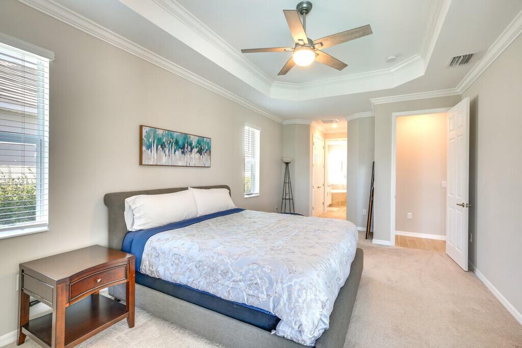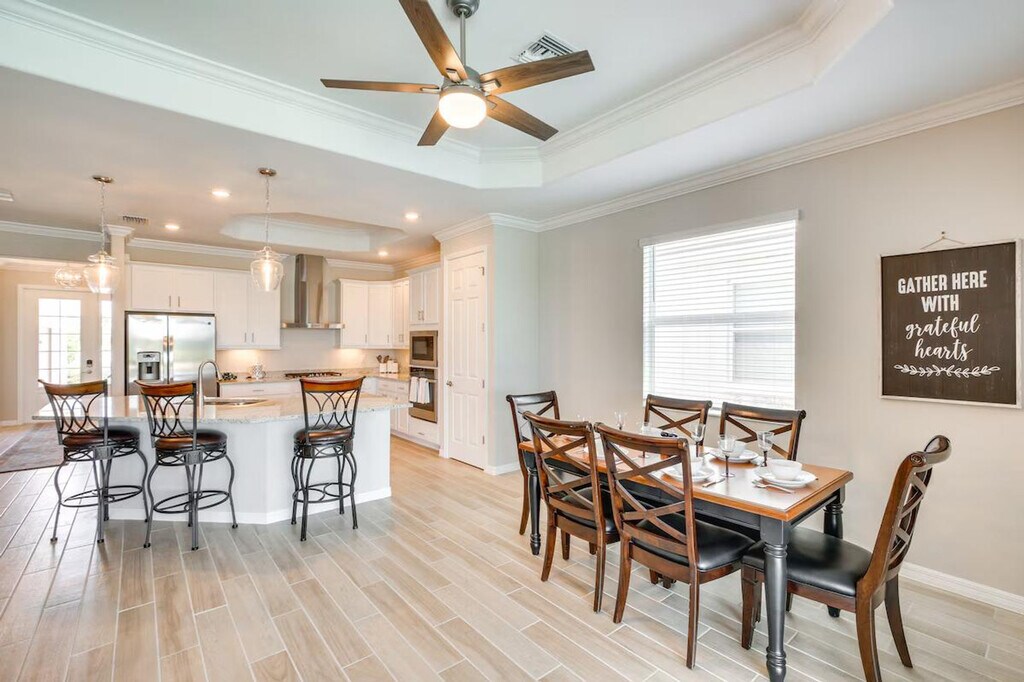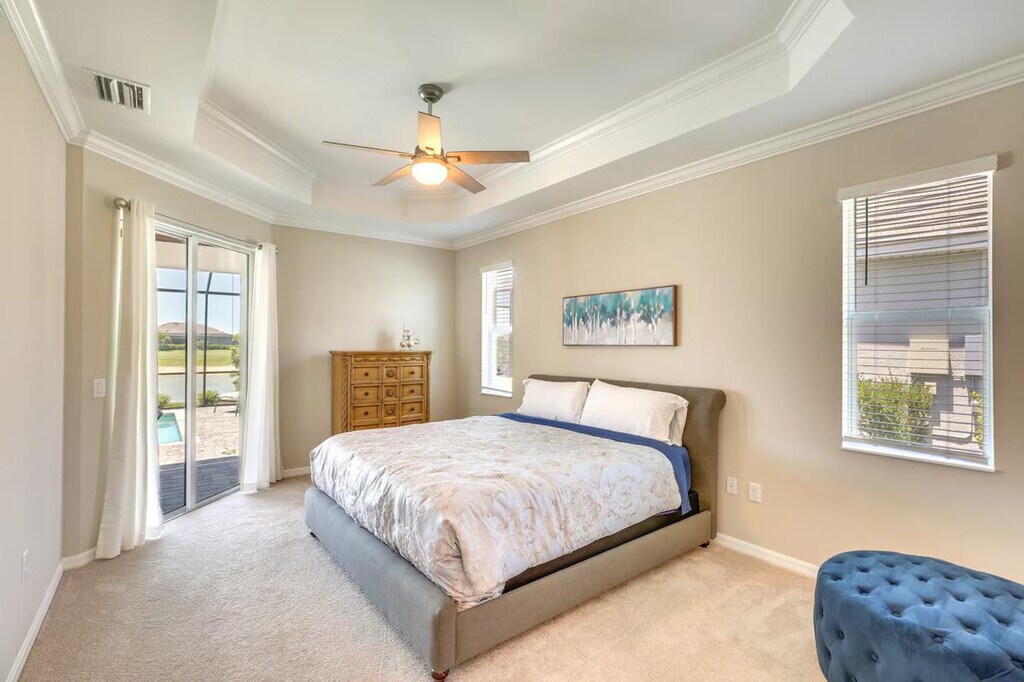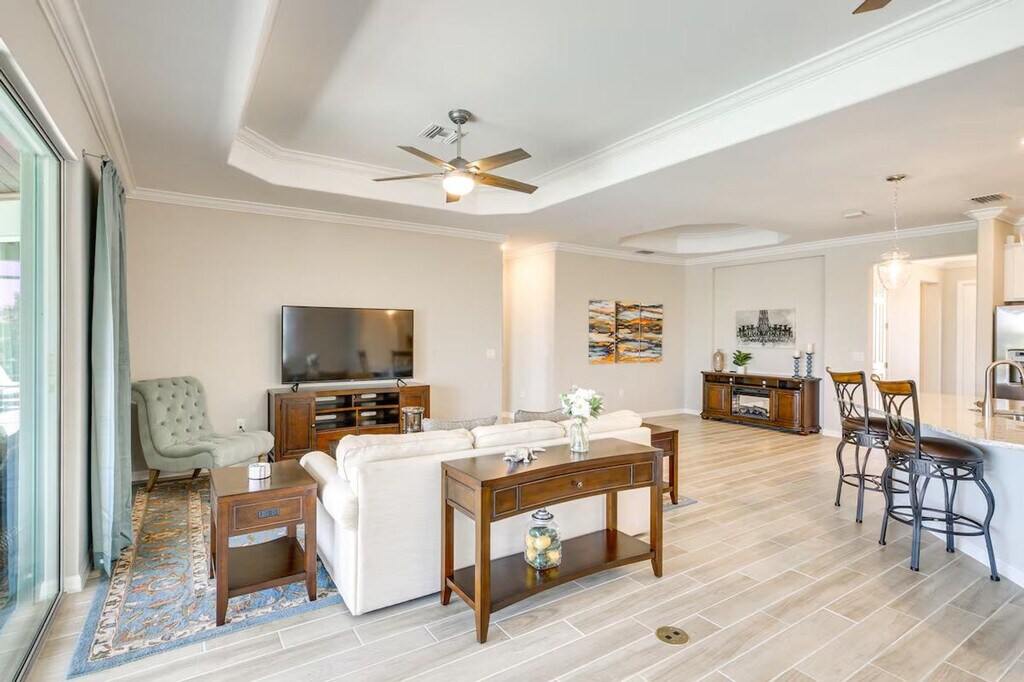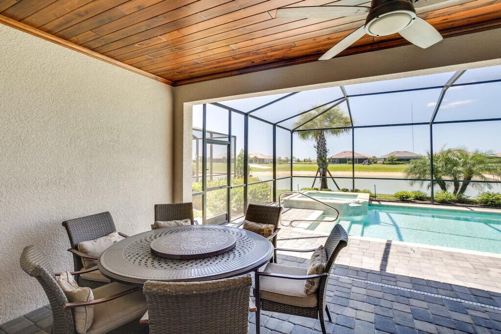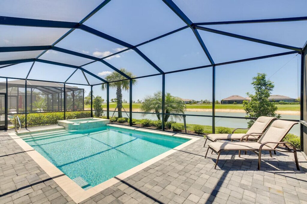 The advertised rate of $4,607/month is the lowest available price, based on a 1 month(s) stay with a move-in date of April 14, 2026. Rates vary depending on the duration of stay, season, and other parameters. For exact pricing and additional pricing components, please visit our website and enter your desired move-in and move-out dates. The rate is applicable when billed upfront; it can be higher if billed in multiple payments. Feel at home in this Punta Gorda vacation rental, boasting a stunning location on a golf course. This single-story, 2-bedroom, 2.5-bath home offers a bright, airy oasis that's perfect for soaking up the Florida sun. The property requires one step to access. This home features a private outdoor pool and spa, a full kitchen, and a washer and dryer. The kitchen is equipped with a coffee maker, dishwasher, microwave, stove/oven, dishware and flatware, an ice maker, refrigerator, water filter, cooking basics, and an island with seating. Enjoy the flat-screen TV, desk workspace, dining table, en-suite bathroom, walk-in closet, and open floor plan. Pets are welcome with a $50 fee. Garage parking for two vehicles and driveway parking for two vehicles are available. Access to the community amenities at Babcock National and unlimited use of the golf course are available for a mandatory membership transfer fee of $150 and an additional $100 fee, respectively. These fees can be paid on-site or to the owner prior to arrival. Venture out and you can visit Founder’s Square at Babcock Ranch, enjoy local shops and restaurants, or take day trips to the beach. Enjoy the lanai and covered patio area with an outdoor dining area, seating, and water view. Smoking, events, parties, and large gatherings are prohibited. Guests must be at least 25 years old to book. Additional fees and taxes may apply. A photo ID may be required upon check-in. Includes free Wi-Fi. [SI]