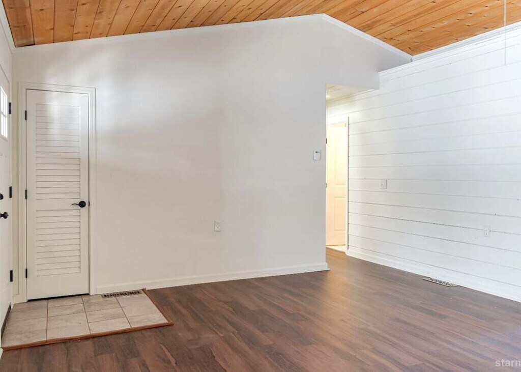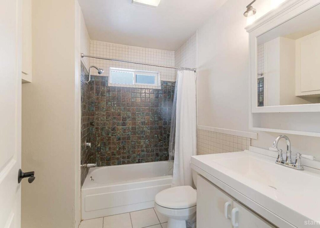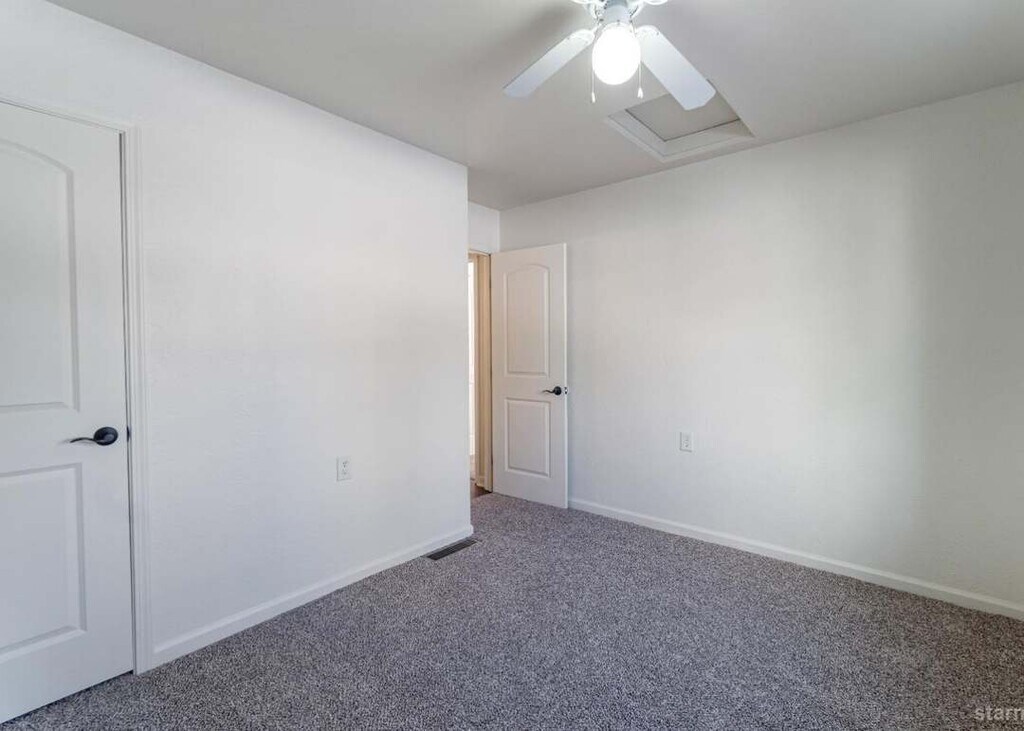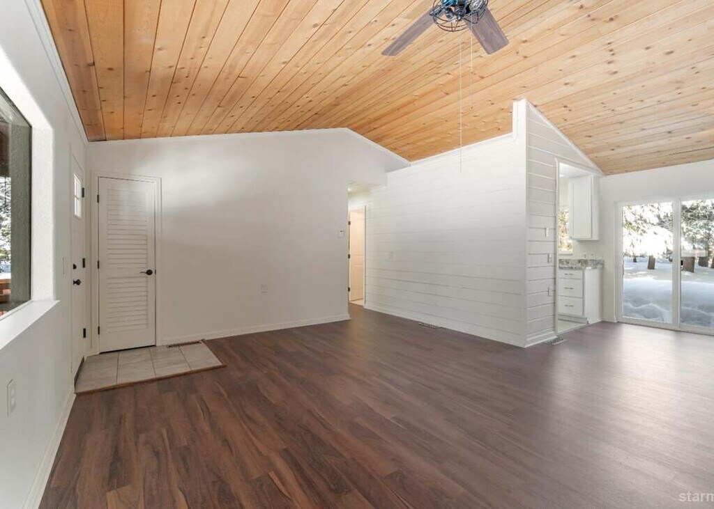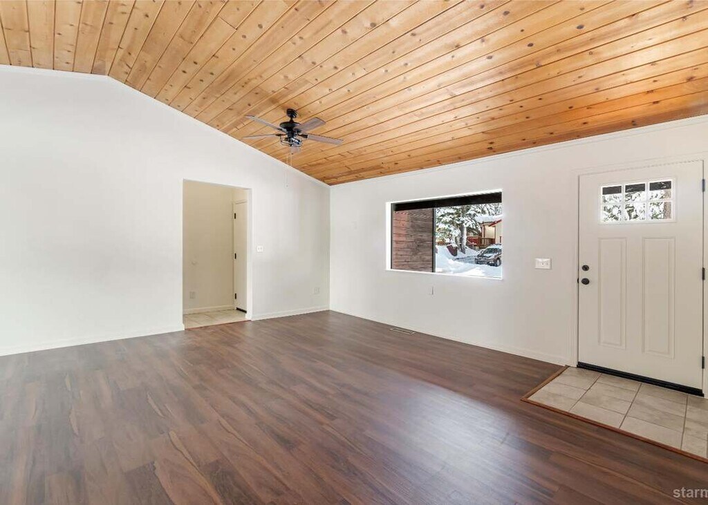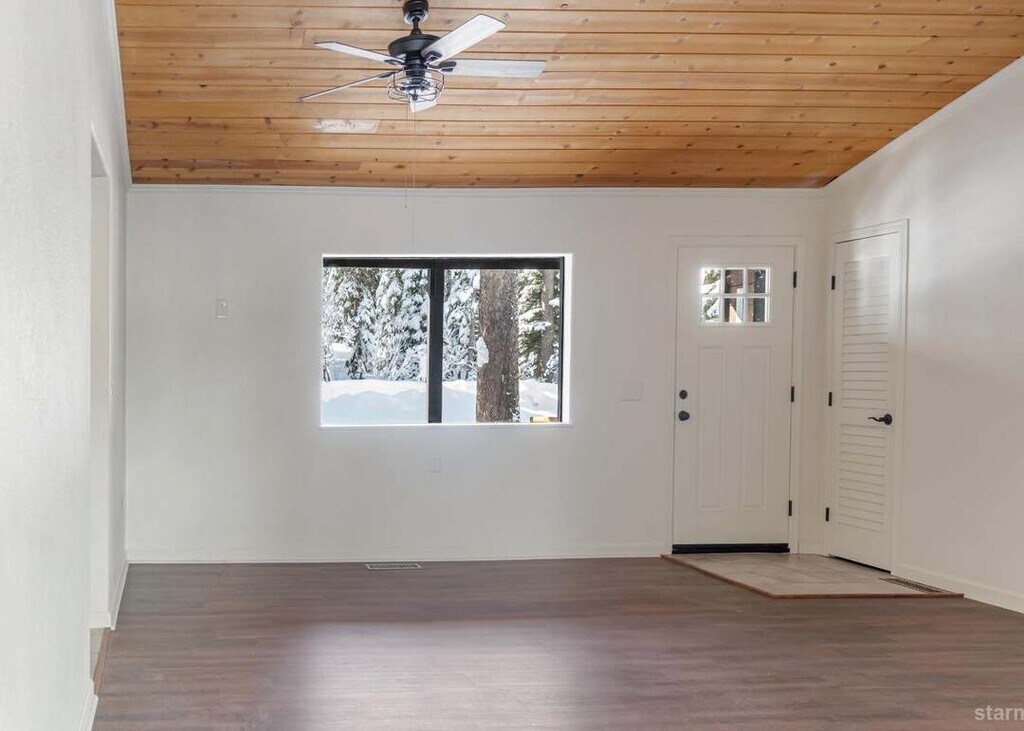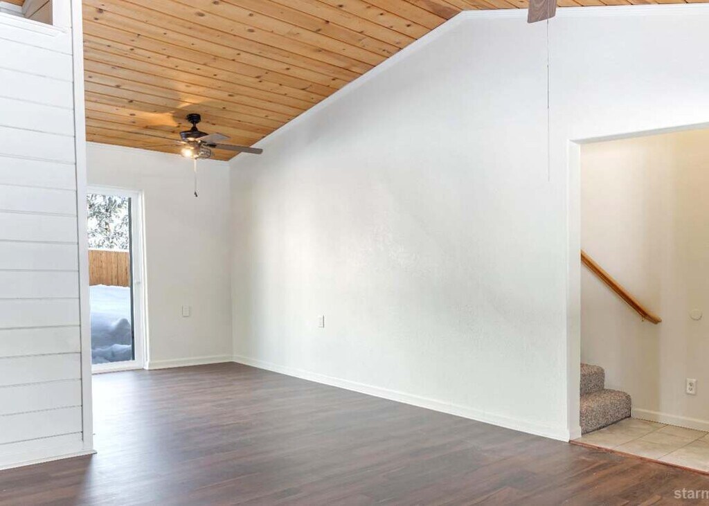 This home is located off Pioneer Trail near Tahoe Paradise with easy access to the ski resorts and into town. This cute home offers 2 bedrooms- 1 bath and comes partly furnished. It has a cozy living area for you to relax in and hang out with friends and family after a long day out on the trails or skiing. The dining area is large enough for 6 people to sit and have dinner. In the kitchen you will find all of the essentials necessary to make daily living a breeze, such as a stove/oven, refrigerator, dishwasher and a microwave. The marble countertops add a touch of luxury to the kitchen. Just past the dining area you will have access to the fenced-in backyard large enough to play catch and in the winter build a snowman. Hurry and come see this home, and don’t wait, it won’t be available much longer! It offers on-site parking and a fenced in backyard. Tenants are responsible for their own snow removal. NO PETS Access to the garage is not available. Owner will be on property once a month to access their unit above the garage. Owner will provide a credit for gas and electric for the time they are on property. Owner to pay for STPUD, South Tahoe Refuse. The owner will pay for Wi-Fi unless Spectrum allows for dual wi-fi systems to be installed.
