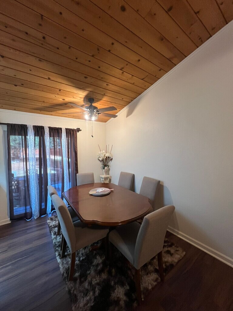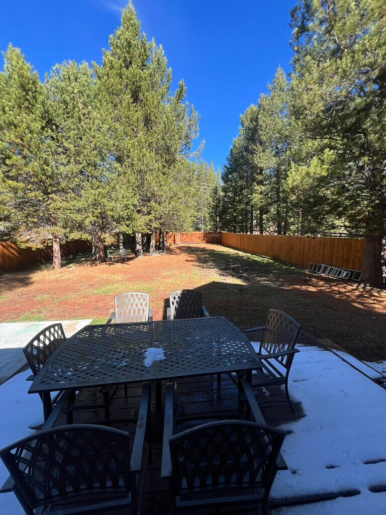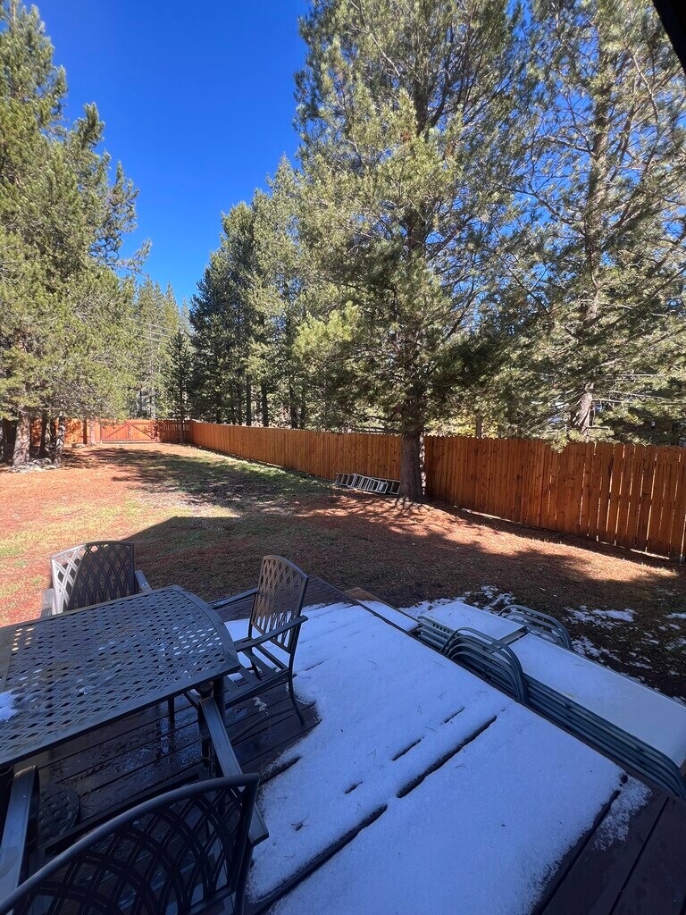This home is located off Pioneer Trail near Tahoe Paradise with easy access to the ski resorts and into town. This cute home offers 2 bedrooms; 1 bath and comes partly furnished. It has a cozy living area for you to relax in and hang out with friends and family after a long day out on the trails or skiing. The dining area is large enough for 6 people to sit and have dinner. In the kitchen you will find all of the essentials necessary to make daily living a breeze, such as a stove/oven, refrigerator, dishwasher and a microwave. The marble countertops add a touch of luxury to the kitchen. Just past the dining area you will have access to the fenced-in backyard large enough to play catch and in the winter build a snowman. Hurry and come see this home, and don't wait, it won't be available much longer! It offers on-site parking and a fenced in backyard. Tenants are responsible for their own snow removal. NO PETS Access to the garage is not available. Owner will be on property once a month to access their unit above the garage. Owner will provide a credit for gas and electric for the time they are on property. Owner to pay for STPUD, South Tahoe Refuse. The owner will pay for Wi-Fi unless Spectrum allows for dual wi-fi systems to be installed.