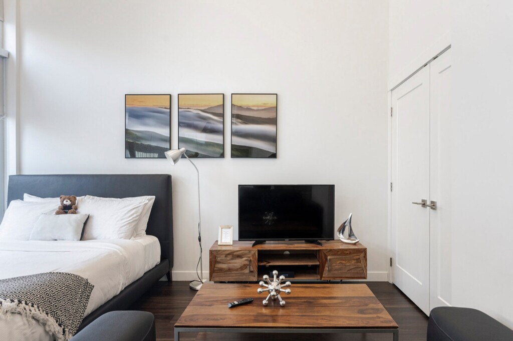 Discover modern comfort in the heart of Halifax with this stylish studio apartment offering scenic city views. Blending contemporary design with inviting amenities, this apartment is an ideal choice for business travelers, family stays, or romantic getaways. Enjoy the convenience of in-suite laundry and elevator access, along with access to a gym and rooftop terrace. Relax in the thoughtfully designed living space, where comfort meets style. Sink into the plush sofa and enjoy the stunning Halifax skyline or stream your favorite shows on the Smart TV. The open-concept design provides a seamless flow, creating an inviting retreat after a busy day. Prepare meals with ease in the sleek, fully equipped kitchen featuring modern appliances, generous counter space, and all the essentials for everything from casual snacks to elaborate dinners. Parking is available for a fee, subject to availability, and an advance reservation is required to guarantee your spot. Cribs and high chairs are available on demand for families traveling with children. We also welcome your furry companions with our pet-friendly policy, allowing one pet per apartment. Complimentary pet bowls are provided, and some buildings feature dedicated pet spaces for play and relaxation. Situated in the vibrant heart of downtown Halifax, this location offers unparalleled access to the city’s top attractions. Explore the lively Barrington Street, famous for its mix of unique shops, inviting cafes, and historic charm. A short walk takes you to the Halifax Waterfront, where you can enjoy breathtaking harbor views, visit the Maritime Museum of the Atlantic, or savor local flavors at the Seaport Market. Conveniently connected to public transit and surrounded by parks, world-class dining, and entertainment options, this prime spot is ideal for both business and leisure travelers. Guests will have full access to the entire apartment with complete privacy. Smart TV can be used with your own streaming account, but there is no TV cable. A Notice to Vacate must be sent in writing 30 nights before the departure date. Failure to do so will result in a charge of 30 nights, only valid for stays over 30 nights. Reservations can be extended with 30 nights notice and are always subject to availability and rate variances. Make the most of your trip with high-speed Wi-Fi and a dedicated workspace, ensuring a productive and stress-free experience. A laptop computer is not included.