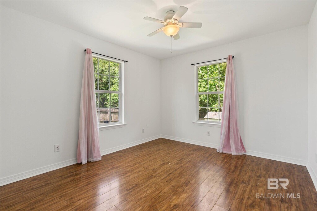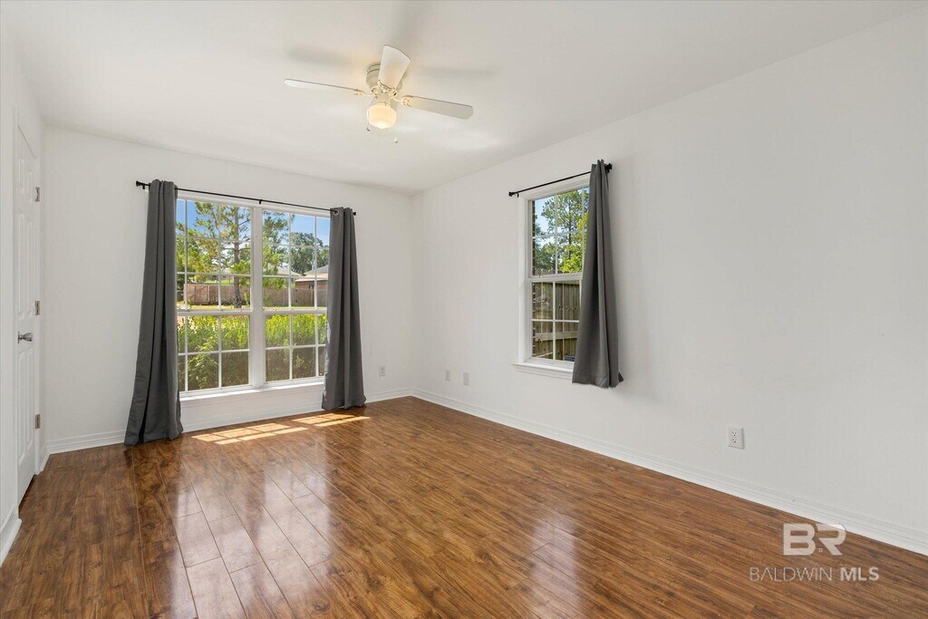 Welcome home to this well-maintained 3-bedroom,2-bathroom home located at 15982 Pecan View Dr,Loxley. This property offers approximately 1,400 sqft of living space featuring hardwood floors throughout,with tile flooring in the kitchen and laundry areas. Enjoy the spacious living room with high ceilings,creating an open and airy feel. The kitchen is functional and bright,and the home also features a large back porch,perfect for relaxing or entertaining guests. The backyard is fully fenced,providing plenty of space for pets or outdoor activities. Pets allowed with owner approval. $350 non-refundable pet fee per pet. Great location close to I-10,shopping,dining,and schools.