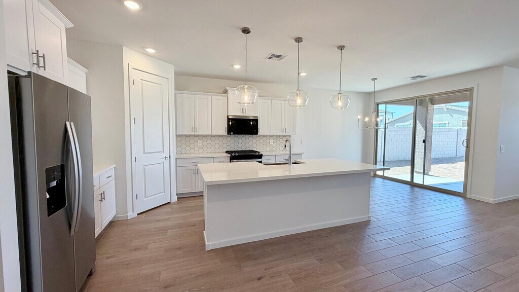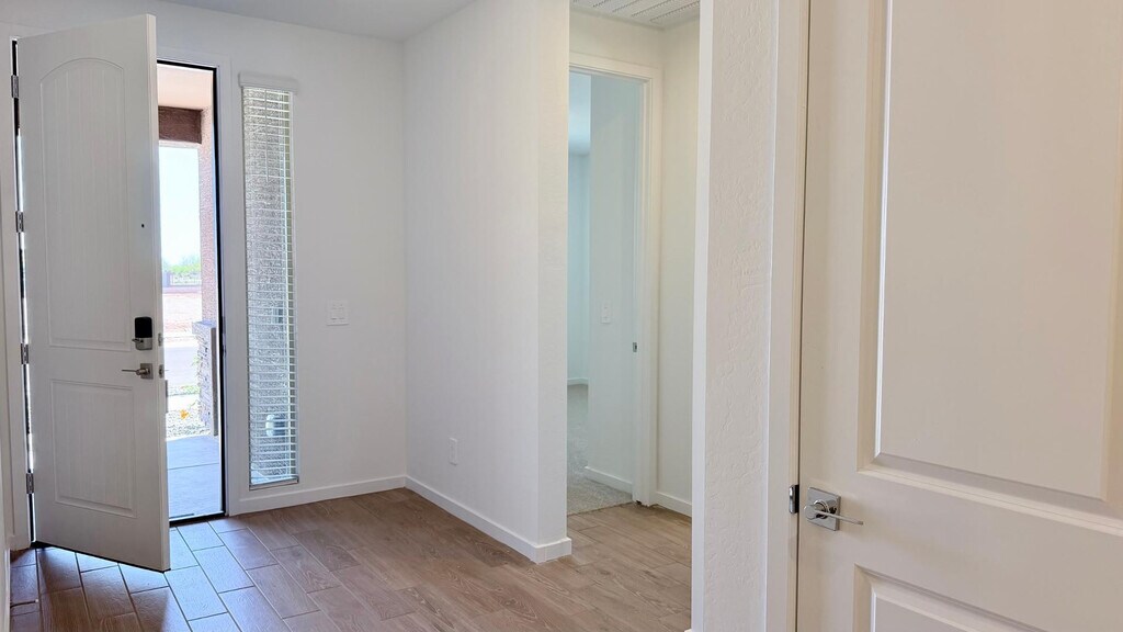 Beautiful Brand-new home featuring 3 bedrooms,3 garage,2 full bathrooms. Quartz countertops,and tile backsplash. Interior upgrades include tiled shower,wood-look tile flooring in main living areas,ceiling fans. Appliances included: washer,dryer,refrigerator,and tankless water heater. Energy-efficient construction designed to reduce utility costs. Community offers exclusive swimming pool,club house and resort-style amenities. Convenient location near shopping,dining,and entertainment. Backyard landscaping with artificial grass,pavers will be ready within a week. Easy access to Loop 303 and conveniently located near TSMC,the area's largest semiconductor employer. MLS ID 7017562