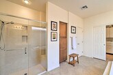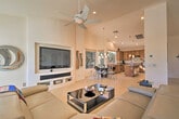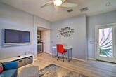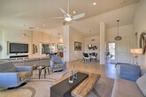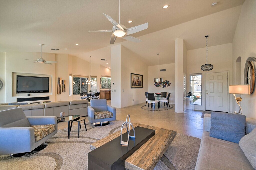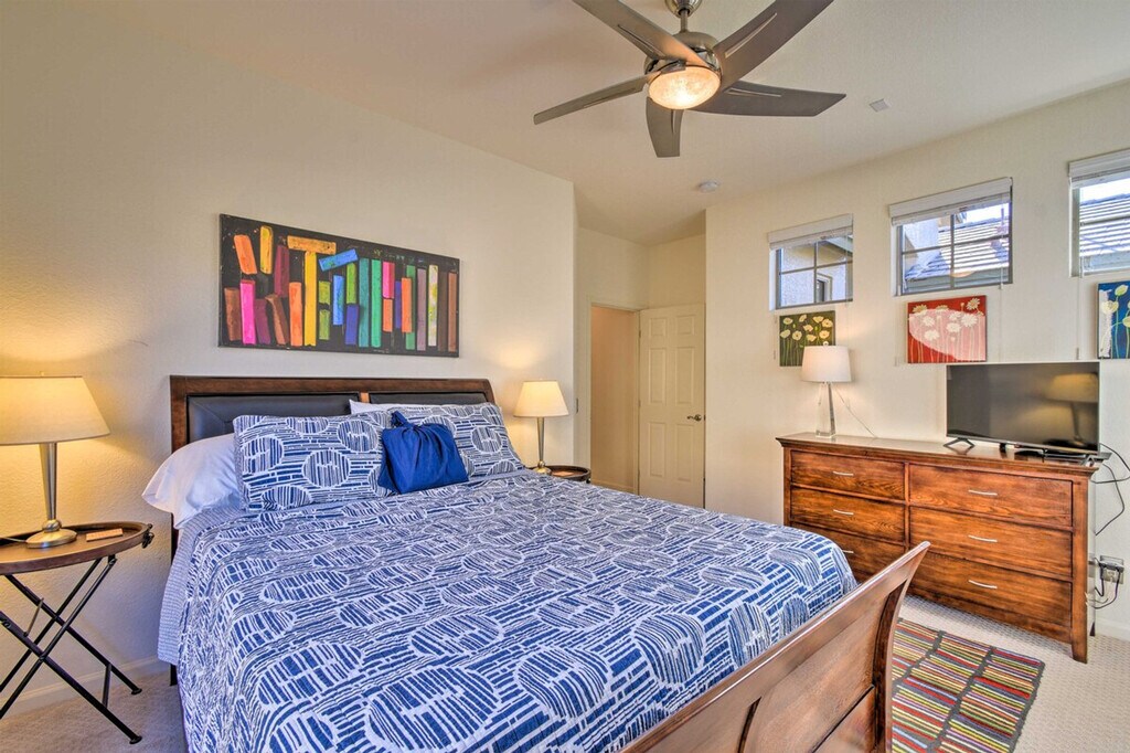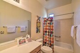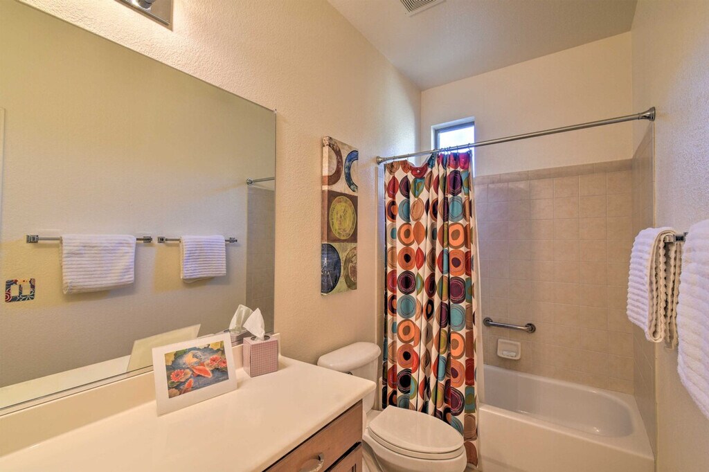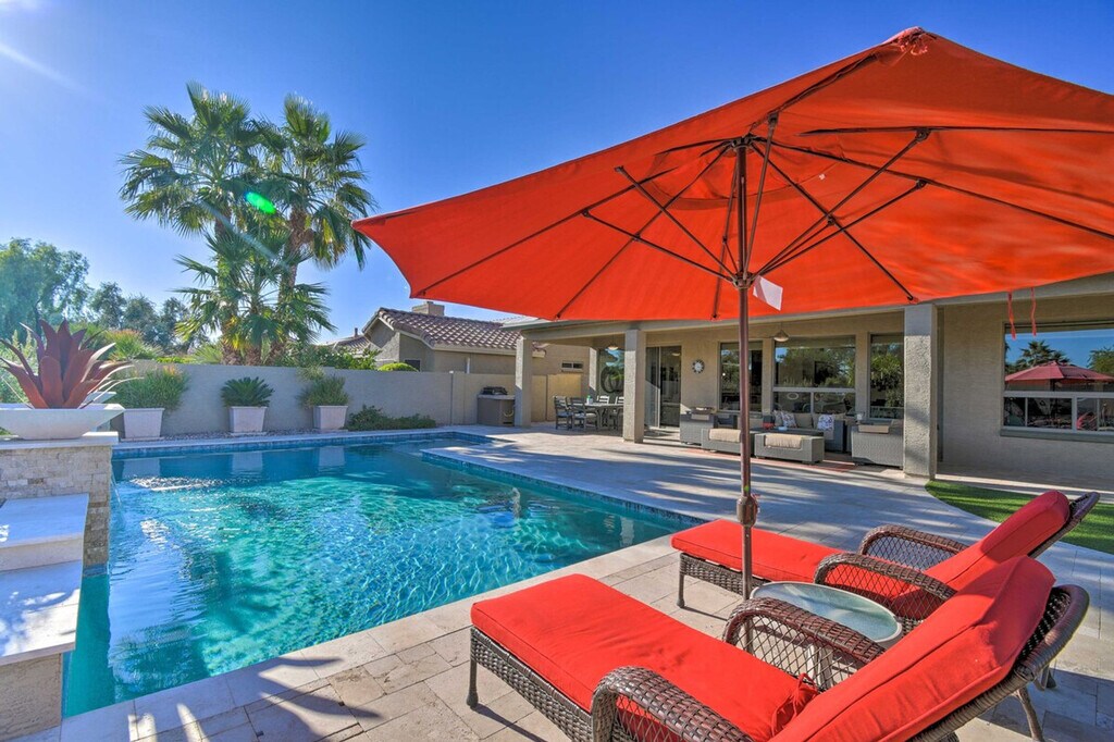 Experience the joys of the Sonoran Desert and feel at home in this stunning 2-bedroom, 3-bath vacation rental nestled in the 55+ PebbleCreek resort community! This high-end residence offers a tastefully furnished interior with a dining room, casita, golf cart, and a full kitchen. Enjoy a private fenced-in yard, a covered patio with a gas grill, patio furniture, an outdoor dining area, artificial grass, lush foliage, and a newly installed pool with a waterfall. Inside, you'll find tile and carpet flooring, tall ceilings, natural light, a family room, a living room with an entertainment center, ceiling fans, flat-screen cable TVs, a dining room, and a laundry room with a washer/dryer. The fully equipped kitchen includes cooking basics, a drip and Keurig coffee maker, and spices. A golf cart is available for use. When you're not enjoying the community gym and tennis courts of PebbleCreek, explore White Tank Mountain, enjoy the high-end shops nearby, or head downtown to enjoy Phoenix! This property is located in a 55+ adults-only community. Adults with children are allowed, but they are limited in the number of community amenities they can use. Events, parties, or large gatherings are not allowed. Guests must be at least 55 years old to book. By booking this property, you agree to comply with City of Goodyear Code of Ordinances Article 8-2 (the “Goodyear Ordinance”). Pursuant to the Goodyear Ordinance, this property requires a sex offender background check and you agree to provide any additional information required to confirm your eligibility to make this booking. [SI]
