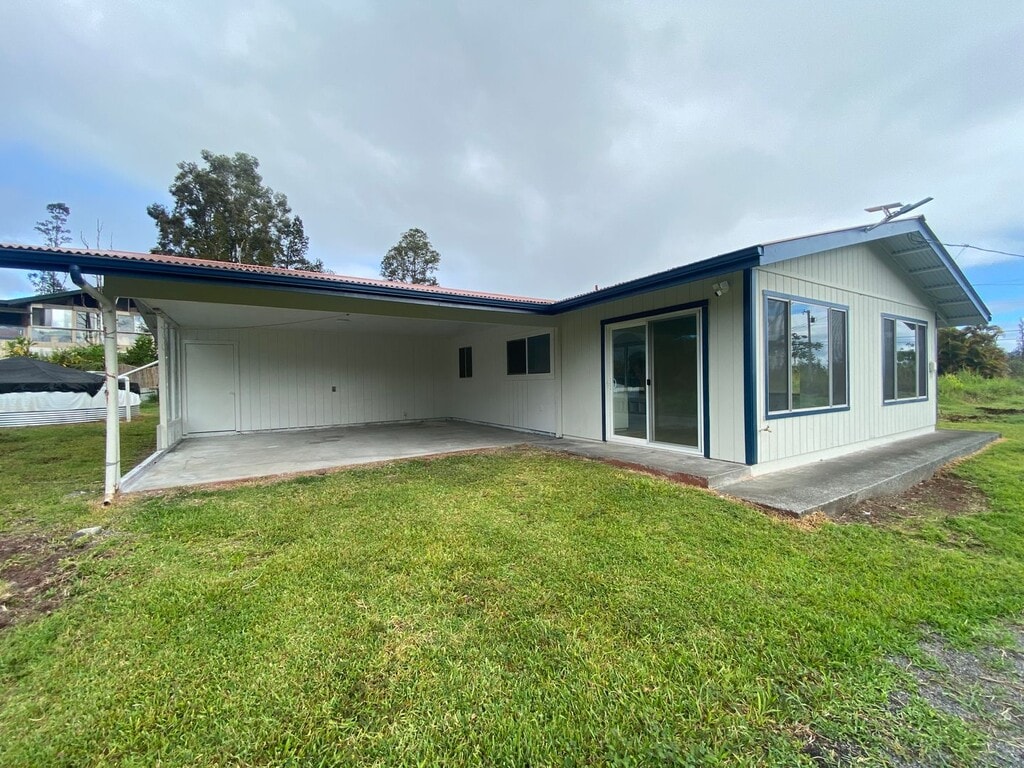 Cute and affordable Hawaiian Acres home! Built in 1982, this 1,056 sq. ft. home is freshly painted and move-in ready. Features include easy-care tile floors, charming arches, and plenty of windows for natural light and airflow. Enjoy a covered carport and a gated yard for privacy and security. Conveniently located just under 10 minutes to Kea?au and about 30 minutes to Hilo for shopping, schools, and amenities—country living made easy. Rent: $1875.00 plus GET $88.35 = $1963.35 Security Deposit: $1875.00 Tenant Responsible for Electric, Cable/Internet, Water, and GE Tax. Owner Responsible Yard Service. No Drugs, No Smoking. Minimum Lease Term: 6 Months All applicants subject to a $37 background and credit check.