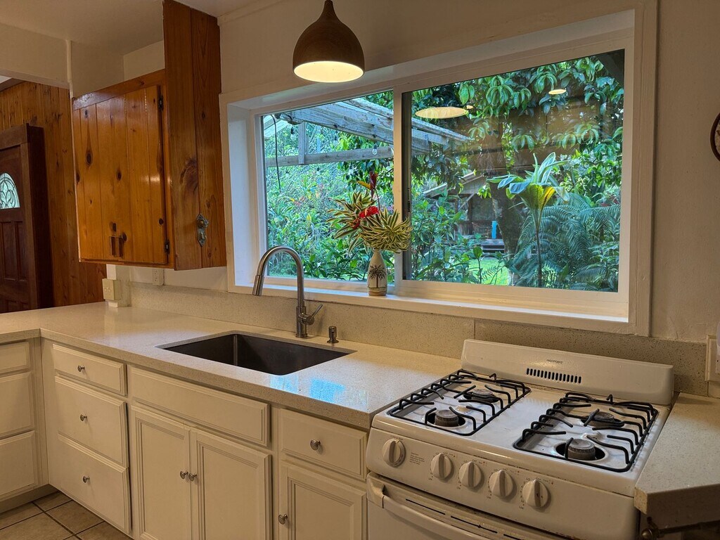 Impressive 3BR/1BA custom home in a private and tranquil setting. Includes main house w/ loft and a separate covered pavilion which elevates the feeling of complete relaxation. Owner's family member has a completely separate, private and gated home at back of lot. Long grassy driveway is shared. Directions: Head southwest on Hawaii Belt Rd/Volcano Rd toward Kuauli Rd.Turn left onto Kuauli Rd. Turn right at stop sign onto A Rd which will eventually turn slightly left and becomes Moho Rd. Home is approximately 3 miles down on the left side. House is not visible from street. Drive by only. Do not access property without being accompanied by the Property Manager. DO NOT DRIVE INTO THE DRIVEWAY. The drive-by is intended to help the applicant determine the property is situated in the desired location with acceptable surroundings/neighborhood. Showings are scheduled for approved applicants - after the drive-by, if interest prevails, please complete the application online at www.hilo-