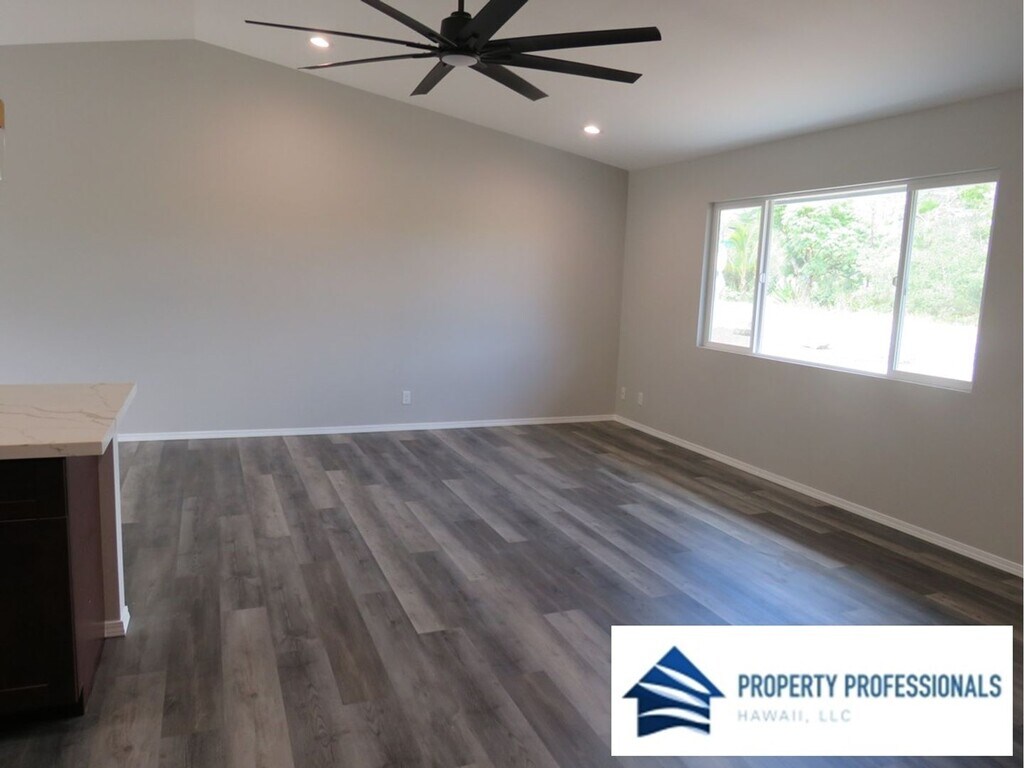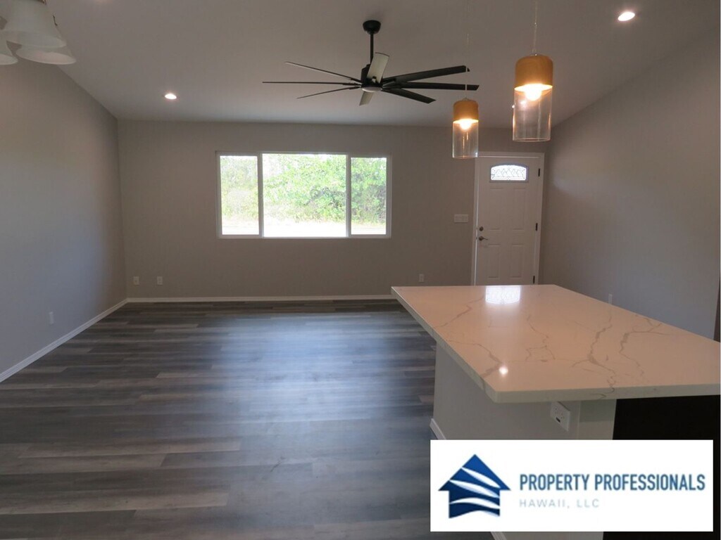 Welcome to your dream home in Ainaloa! This brand new construction boasts an open floor plan with 3 bedrooms and 3 bathrooms. The home is equipped with all new appliances, ensuring a modern and efficient living experience. The location is a standout feature, close to the highway at the top of the subdivision. A perfect blend of style, comfort, and practicality, designed to cater to a contemporary lifestyle. Experience the ease of living in this new home with many well thought out touches. Includes range, refrigerator, solar water heater, microwave, washer, dryer, yard service. Tenant responsible for electric, water, trash, cable, internet, phone. Exterior pet negotiable; must be kenneled & Pet Deposit applies. Contact: Ketura Waiki R(B) Property Professionals Hawaii LLC Apply at: