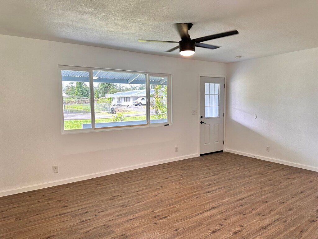 Welcome to the Ainaloa Ohana Home, located in the beautiful town of Pahoa, Hawaii. This newly remodeled home offers a cozy and comfortable living space with 2 bedrooms and 1 bathroom. The interior features ceiling fans throughout, ensuring a cool and refreshing atmosphere. The sliding screen/glass back door allows for plenty of natural light to fill the space, creating a bright and inviting ambiance. The convenience of a washer and dryer room on property makes laundry a breeze. Outside, you'll find a partially fenced yard, perfect for enjoying the outdoors. With its prime location in Pahoa, you'll have easy access to local amenities, including shops, restaurants, and parks. Don't miss the opportunity to make this Ainaloa home your own. A seperate rental unit is on the left side of house. Home is on a water catchment system, tenant should have some idea of water catchment maintenance. Filters need to be changed regularly, amount of water in tank needs to remain above 1/3 of the tank size.