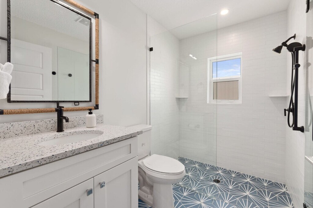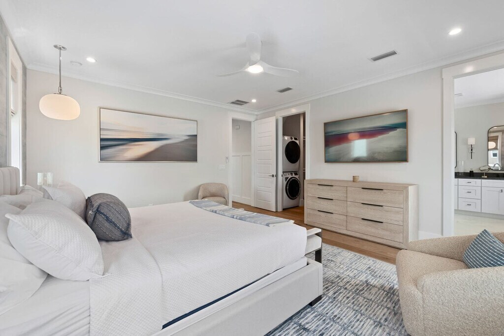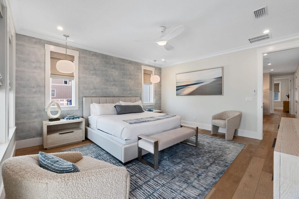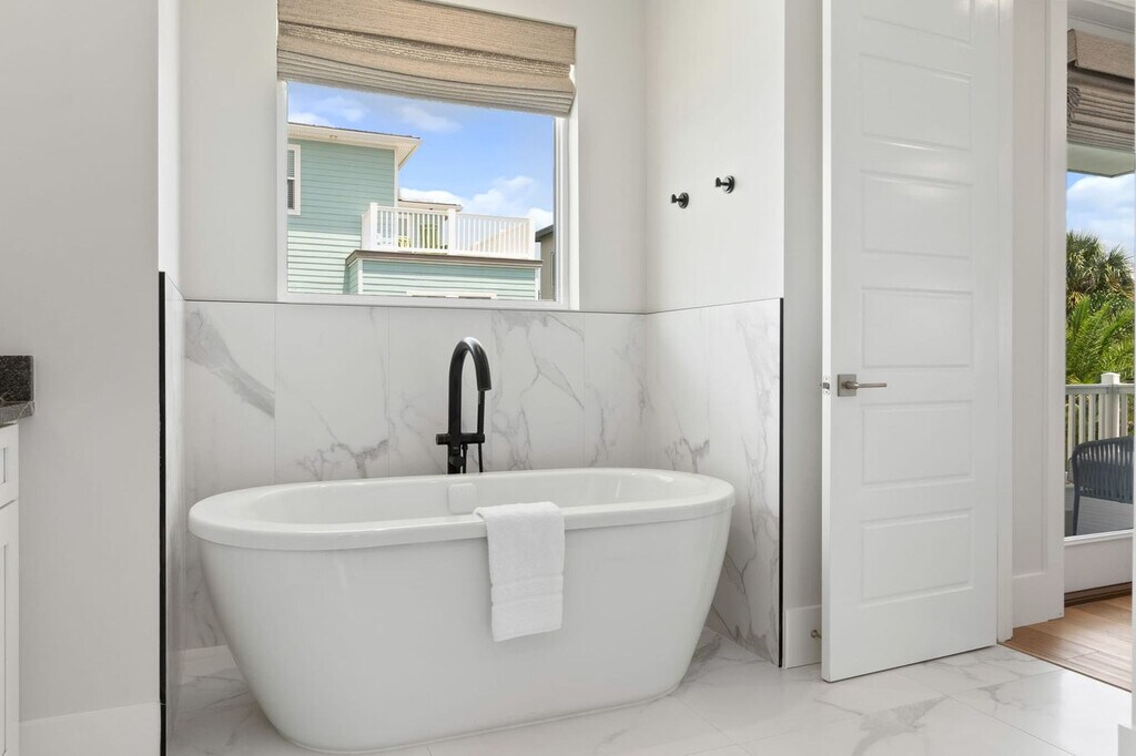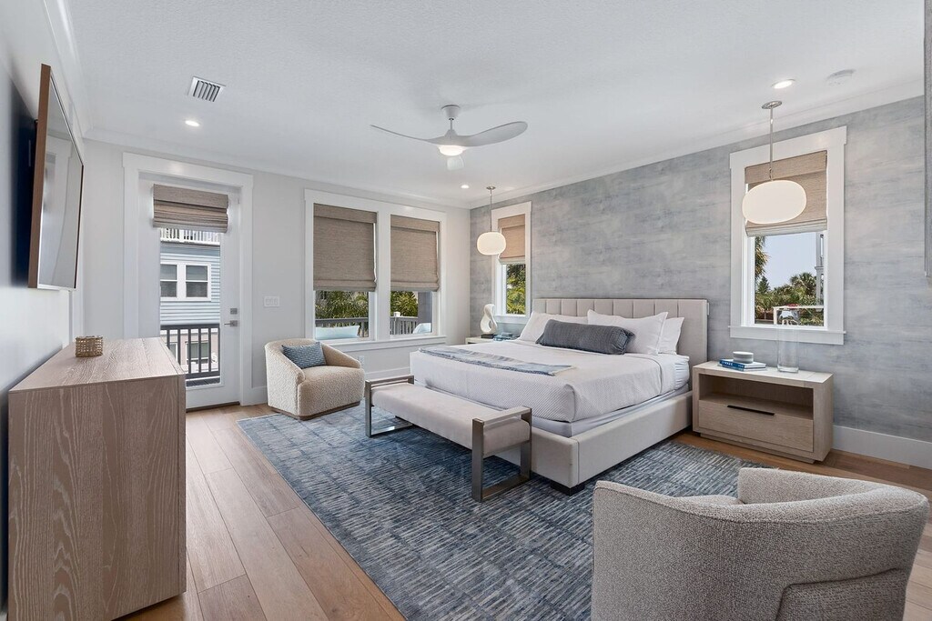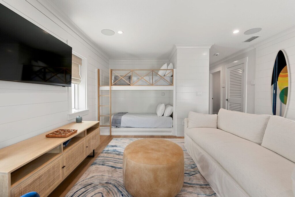 Stunning new construction luxury home on the east side of A1A, just steps from the sand, featuring five king bedrooms all with en-suite bathrooms, a bunk room, and a total of 6.5 bathrooms. Enjoy the convenience of an elevator, a heated pool and spa, and a roof deck offering panoramic views of St. Augustine Beach. The spacious third-floor living, dining, and kitchen area is perfect for entertaining, complemented by three balconies and a garage equipped with a ping pong table, beach gear, and an EV charger. This family-friendly home includes a high chair and pack 'n play. Welcome to this enchanting home, a 2024 Parade of Homes Winner for the $2.5 Million Category. The modern open-concept design includes an elevator, two living areas, a high-end kitchen, luxe king beds, and a resort-style yard with a heated pool, BBQ, and stunning ocean views from the balconies and sunny roof deck. The first floor features a plush sofa, cozy accent chairs, a queen pullout bed, and a built-in bunk bed made of two twins. A wet bar with an ice maker and wine cooler keeps your poolside drinks flowing. The second floor offers four spacious bedrooms with king beds, en-suite bathrooms, smart TVs, and private closets. The third floor boasts a bright, open-concept living area with a gourmet kitchen fully equipped with high-end appliances, a grand dining table, and a sleek marble breakfast bar. The garage includes an EV charger, and the home is equipped with a heated pool and spa. Family-friendly amenities include a high chair and pack 'n play. Located in St. Augustine Beach, just a few minutes from the public pier and an easy walk to top beachside restaurants. The home is a 10-minute drive to the historic downtown area of St. Augustine, offering old-world charm, flavorful dining, art and culture, and abundant entertainment. Enjoy local cafes and restaurants nearby, or leave the car parked and spend your days at the beach, then relax by the pool. The home has active security cameras installed at the front door, above the garage doors, and in the backyard/pool area. Tampering with or disconnecting the cameras may result in reservation cancellation and guest removal. Quiet hours are from 10 p.m. to 8 a.m. per St. Johns County ordinance. No parties, pets, smoking, or vaping are allowed on the property. Evidence of smoking or vaping will incur an additional cleaning fee of up to $500. Late check-outs and early check-ins are subject to a $100 per hour fee. The home is not child-proofed, and parents with younger children use the home at their own risk.