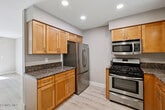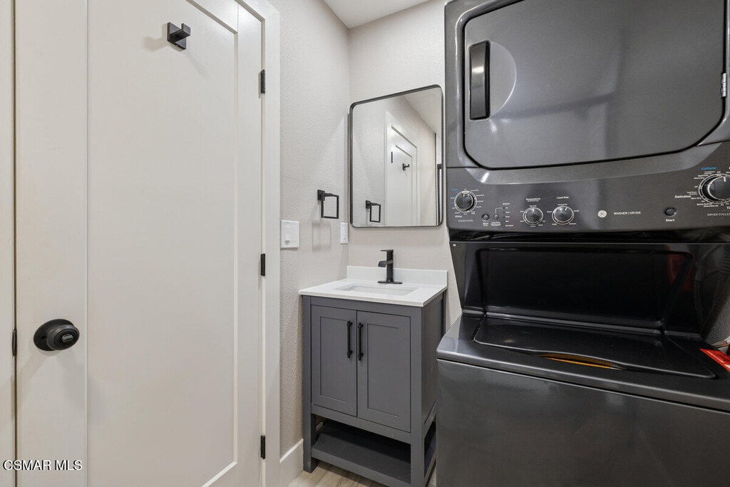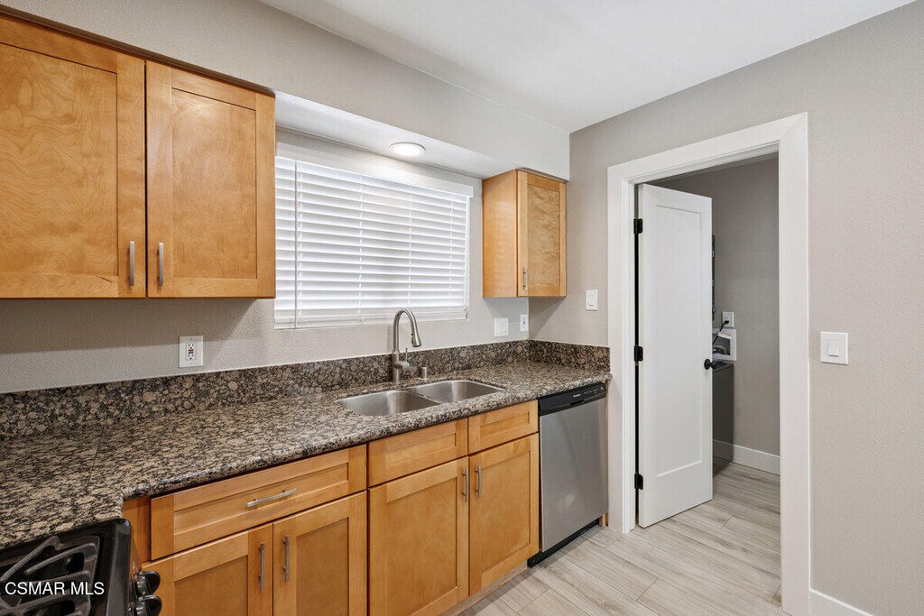 Come see this newly renovated studio on a quiet street in Thousand Oaks. Open the gate and follow the path to your own private oasis. The full-size kitchen features custom cabinets, granite counter tops and stainless-steel appliances including a new refrigerator. The new bath has a large shower, new vanity, and a new stack laundry unit - included. The studio has its own heat/air, no need to share. There is no garage, but the studio comes with a large storage unit.