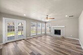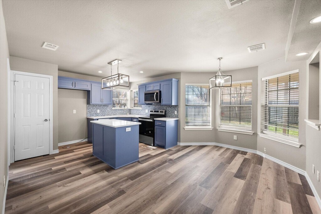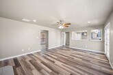 Large remodeled home has fresh paint upgraded bathrooms and Laminate wood floors. Has open Kitchen and Living room and formal dining room all bedrooms are upstairs. has Utility room off of kitchen and has side entry 2 car garage