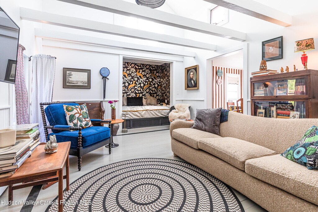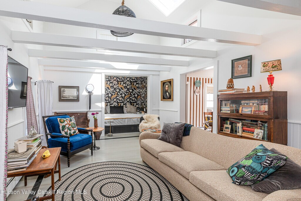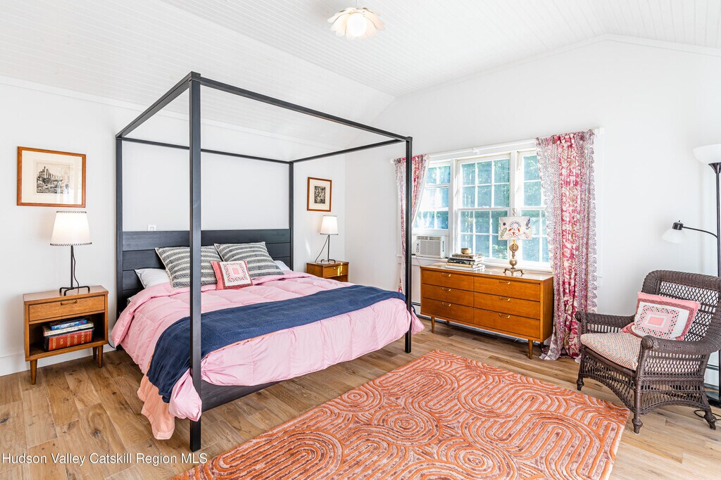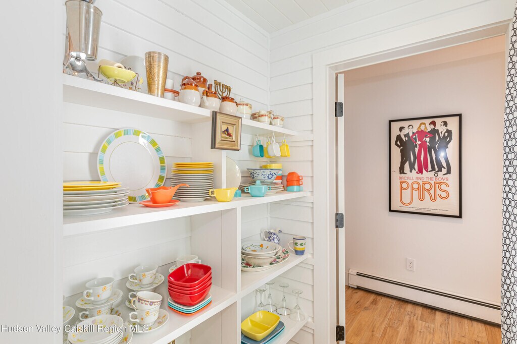 16 Bakertown Road is a perfectly furnished turn of the century house that was lovingly restored in 2022. Completely remodeled from top to bottom,its high design and attention to detail respect the character of this historic building,while bringing it completely up-to-date,with new finishes and upgrades that marry the period details to today's aesthetic.This charming home sits on 2.5 acres on a beautiful quiet country road in idyllic Accord,NY. Enter through a charming mudroom and into a large foyer with Andy Warhol Dance Diagram wallpaper. This leads to the historic part of the house which now functions as a central living room,complete with exposed beams,cathedral ceilings,original painted wainscotting and hardwood floors,as well as a large skylight to let the sun pour in. This room has an abundant living area with an eclectic mix of new and antique furniture,and a queen size sleeping nook wrapped in Schumacher Les Gazelles Au Bois wallpaper,perfect to settle in with a book (or for a nap!). The living room has a large flat screen smart TV as well as an old school stereo and record player with a vast selection of vinyl LPs! A staircase leads to bright and lovely loft space which can be the perfect home office or another guest space. A fully equipped windowed kitchen with the original bead-board ceiling,features new black stainless steel french door refrigerator,vented five burner and griddle range,dishwasher and microwave and new black stone counters with white tile backsplash. The kitchen and charming paneled dining room boast scraped white oak hardwood floors. The dining room opens to an enormous sunny deck with chaise lounges,full size dining table and gas grill. The large backyard has a large koi pond with the woods beyond,and a lovely fire pit with outdoor seating. The bedroom wing is secluded on one side of the house,also with scraped oak hardwood flooring. The king size bedroom boasts cathedral ceilings,oversized windows looking onto the yard and pond,and a sliding door out to the deck. The large queen bedroom has its own lovely screened in porch. Both bedrooms boast new plush pillow top Simmons Beautyrest mattresses,as well as empty closets and dressers for your belongings. Between the two bedrooms is a perfectly appointed,large,windowed bathroom featuring white tiles,bead-board walls,a deep jetted soaking tub and separate shower,and Kohler fixtures. A full second windowed bathroom at the other end of the house features black and white tiled radiant heated floors and a large shower. The property is just two miles from Westwind Orchard/Cidery,Arrowood Brewery and Innes. It is also a short drive from New Paltz,Kingston,Woodstock,Stoneridge,High Falls and Rosendale; and just minutes away Hiking trails of Minnewaska State Park,the Mohonk Preserve and the Hudson Valley Rail Trail. Hunter,Belleayre,and Wyndham Ski resorts are all under an hour away.