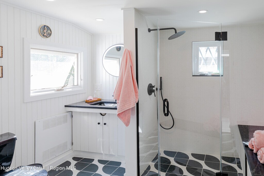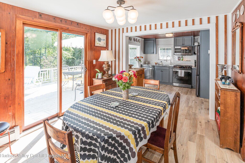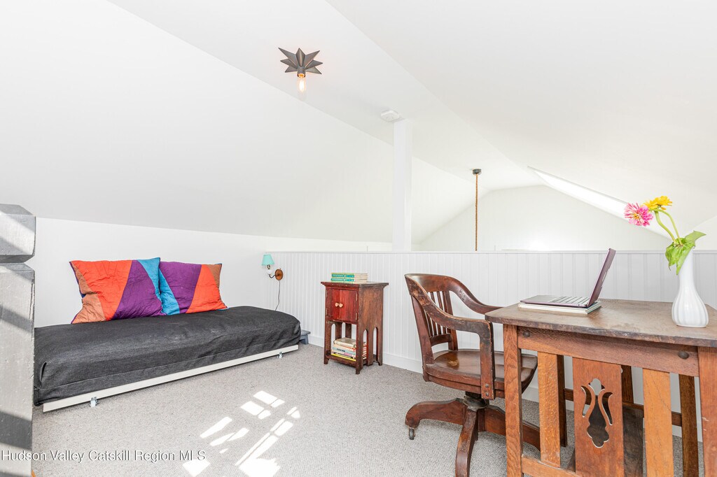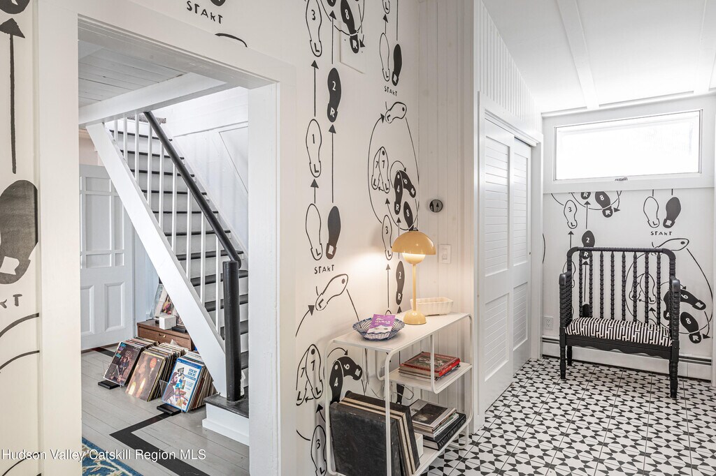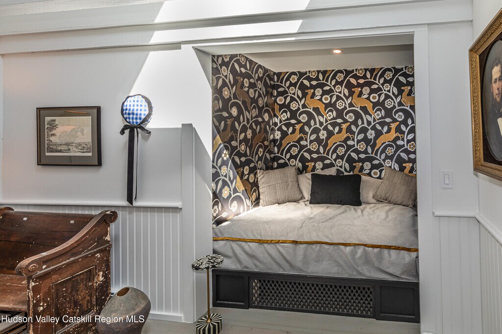 16 Bakertown Road is a perfectly furnished turn of the century house that was lovingly restored in 2022. Completely remodeled from top to bottom,its high design and attention to detail respect the character of this historic building,while bringing it completely up-to-date,with new finishes and upgrades that marry the period details to today's aesthetic.This charming home sits on 2.5 acres on a beautiful quiet country road in idyllic Accord,NY. Enter through a charming mudroom and into a large foyer with Andy Warhol Dance Diagram wallpaper. This leads to the historic part of the house which now functions as a central living room,complete with exposed beams,cathedral ceilings,original painted wainscotting and hardwood floors,as well as a large skylight to let the sun pour in. This room has an abundant living area with an eclectic mix of new and antique furniture,and a queen size sleeping nook wrapped in Schumacher Les Gazelles Au Bois wallpaper,perfect to settle in with a book (or for a nap!). The living room has a large flat screen smart TV as well as an old school stereo and record player with a vast selection of vinyl LPs! A staircase leads to bright and lovely loft space which can be the perfect home office or another guest space. A fully equipped windowed kitchen with the original bead-board ceiling,features new black stainless steel french door refrigerator,vented five burner and griddle range,dishwasher and microwave and new black stone counters with white tile backsplash. The kitchen and charming paneled dining room boast scraped white oak hardwood floors. The dining room opens to an enormous sunny deck with chaise lounges,full size dining table and gas grill. The large backyard has a large koi pond with the woods beyond,and a lovely fire pit with outdoor seating. The bedroom wing is secluded on one side of the house,also with scraped oak hardwood flooring. The king size bedroom boasts cathedral ceilings,oversized windows looking onto the yard and pond,and a sliding door out to the deck. The large queen bedroom has its own lovely screened in porch. Both bedrooms boast new plush pillow top Simmons Beautyrest mattresses,as well as empty closets and dressers for your belongings. Between the two bedrooms is a perfectly appointed,large,windowed bathroom featuring white tiles,bead-board walls,a deep jetted soaking tub and separate shower,and Kohler fixtures. A full second windowed bathroom at the other end of the house features black and white tiled radiant heated floors and a large shower. The property is just two miles from Westwind Orchard/Cidery,Arrowood Brewery and Innes. It is also a short drive from New Paltz,Kingston,Woodstock,Stoneridge,High Falls and Rosendale; and just minutes away Hiking trails of Minnewaska State Park,the Mohonk Preserve and the Hudson Valley Rail Trail. Hunter,Belleayre,and Wyndham Ski resorts are all under an hour away.
